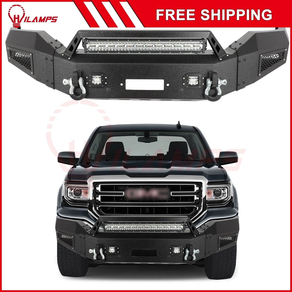 Fitment: Textured Steel Front Bumper Winch For 2016 2017 2018 GMC Sierra 1500 w/LED Light Position: Placement on Vehicle:Front Package Included: 1X front bumper assembly Description: [Heavy-Duty Protection] Bumper is manufactured from heavy duty 5/32" steel sheet and 2"X0. 120" steel tubing to add protection to your precious vehicle while providing it with superior towing capabilities with its heavy-duty D-rings. It also gives your vehicle an attractive upgrade in its appearance for added style. [High Strength D-Ring Mounts] Steel Complete Front Bumper w/Light Bar D-ring Fits 2016-2018 GMC Sierra 1500 Fitment: Textured Steel Front Bumper Winch For 2016 2017 2018 GMC Sierra 1500 w/LED Light Position: Placement on Vehicle:Front Package Included: 1X front bumper assembly Description: [Heavy-Duty Protection] Bumper is manufactured from heavy duty 5/32" steel sheet and 2"X0. 120" steel tubing to add protection to your precious vehicle while providing it with superior towing capabilities with its heavy-duty D-rings. It also gives your vehicle an attractive upgrade in its appearance for added style. [High Strength D-Ring Mounts] The D-Ring mounts are welded both inside and outside for extra strength,Perfect for Off-Road Protection. [Extremely Bright Light] Built-in 1x 144W long light bar,2x 20W strip lights and 2x 18W LED Lights.They brighten up the road, perfect for any night time adventure. [Bolt-on Installation] This bumper is also designed with ease of use and installation in mind. Thanks to its convenient bolt-on solution, this bumper installs quickly and easily without requiring any modification to your vehicle [Easy Installation] Designed to be a direct bolt-on aftermarket bumper using just basic hand tools, so there is no drilling or cutting required for installation. Product will be received exactly the same as shown in the picture! Please feel free to contact us if you have any question! Item Specifics Brand hilapms Manufacturer Part Number 12356104 Manufacturer Warranty 1 Year Other Part Number Fits 2016 2017 2018 GMC Sierra 1500 Placement on Vehicle Front Fitment Type Direct Replacement Material Heavy Duty Steel Color Black Item Weight 148 lbs Finish Powder Coated Custom Bundle No Type Bumper Assembly Modified Item Yes Features Mounting Hardware Included,Scratch-resistant Applicable Regions US Installation Simple Bolt-On, No Drilling Required Interchange Part Number Pickup Truck Winch Bumper Bull Guard Steel Off road Textured Winch Plate Capacity Accepts up to 12,000 lb. winches or smaller. D-Ring Capacity 4.75 ton Instruction Included Yes Winch Plate Included Yes D-rings Included Yes Lights Included Yes Applicable Regions US Installation Simple Bolt-On, No Drilling Required Interchange Part Number Pickup Truck Winch Bumper Bull Guard Steel Off road Textured Winch Plate Capacity Accepts up to 12,000 lb. winches or smaller. D-Ring Capacity 4.75 ton Lights Included Yes D-rings Included Yes Instruction Included Yes Winch Plate Included Yes Payment 1.We only accept PayPal. 2.Please do not use the PayPal note field to indicate us to ship to other address. The note there will NOT be read. If you want to change the shipping address, please contact us by eBay messages. 3.(if you want cancel orders or change address pls contact us within 6 hours after payment,or we are not responsible for shipping a replacement.) 4.Payment must be received within 10 days as auction ended or order might be delayed. Shipping 1. Orders processed within 24 hours of payment verification.(if you want cancel orders or change address pls contact us within 6 hours after payment,or we are not responsible for shipping a replacement.) 2. We only ship to confirmed PAYPAL addresses. Your PAYPAL address must match your Shipping address. 3. The images shown are not the actual item and are for your reference only. 4. Fast shipping:All our packages use USPS First Class/UPS/Fedex... Package Service 5. If you have not received your shipment within 15 days from payment , please contact us. We will track the shipment and get back to you as soon as possible with a reply. Our goal is customer satisfaction! Returns 1. You have 30 days to contact us and 10 days to return it from the date it was received. If this item is in your possession more than 7 days, it is considered used and we will not issue you a refund or replacement. There are NO EXCEPTIONS! 2. All returned items must be in the original packaging and you must provide us with the shipping tracking number, specific reason for the return, and item custom lable. 3. We will refund your full winning bid amount, upon receipt of the item in its original condition and packaging with all components and accessories included, AFTER both Buyer and Seller cancel the transaction from eBay. OR, you may choose to have a replacement. 4. Return shipping is to be paid by the Buyer. Feedback 1. We maintain high standards of excellence (five stars review)and strive for 100% customer satisfaction! FEEDBACK IS VERY IMPORTANT TO US. We request that you contact us immediately BEFORE you give us neutral or negative feedback, so that we can satisfactorily address your concerns. 2. It is impossible to address issues if we do not know about them! Shop Category Store Home Towing Mirrors Sensors Cooling System ◈ Radiator ◈ Cooling Fan ◈ Thermostat Housing ◈ Water Pump ◈ Oil Coolers Air Conditioning System ◈ Condenser ◈ Module & Resistor ◈ Blower Lamps ◈ Brake light ◈ Instrument Light ◈ Headlight Assembly ◈ Side Marker light ◈ Headlight Truck Bed Accessories CV Axle Shaft Alternator Radiator Brake pads Steering Shaft Windshield Wiper Motor Strut Assemblies Door Handle Wheel Hub Bearing Assembly Wheel Adapters Window Switch Bumpers Window Regulator Compressor Window Visor Drive shaft CDI BOX Other Hot Item High Mount LED 3rd Brake Light Lamp For 1994-2001 Dodge Ram 1500/2500/3500 Smoke USD 21.31 For 2014-2018 Chevy Silverado & GMC Sierra 1500 2500 LED 3rd Brake Light Smoke USD 28.