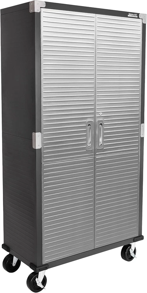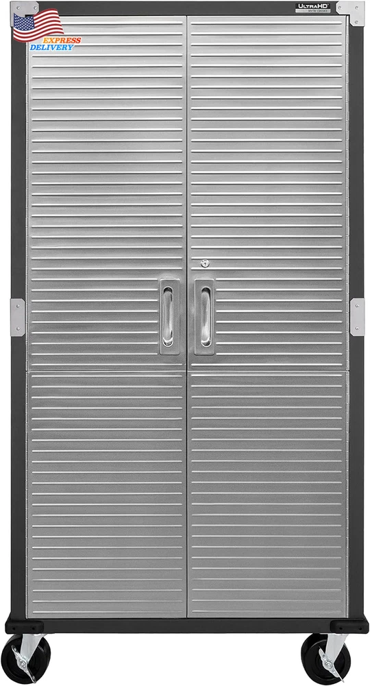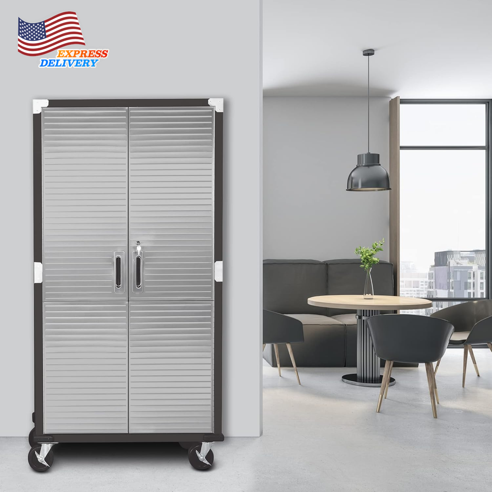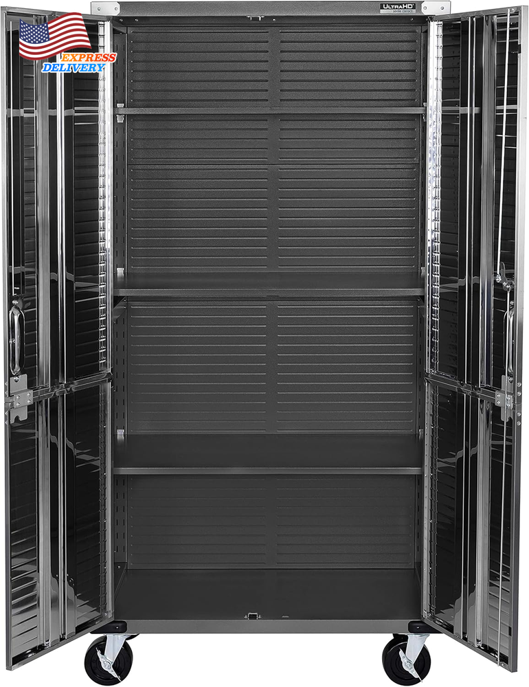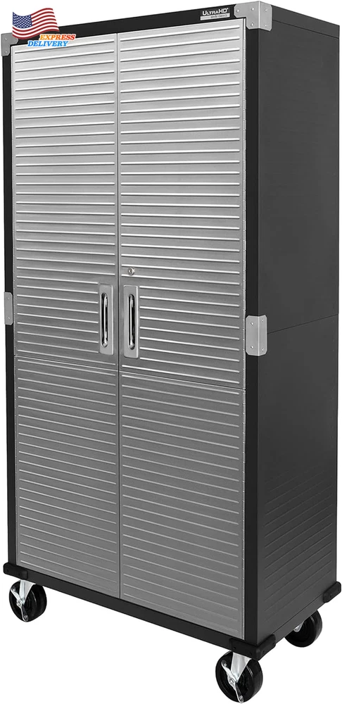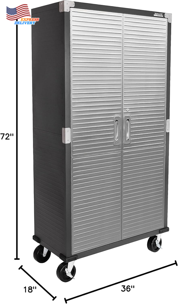 Finish types: Powder Coated Special Feature: Adjustable Shelf Mounting Type: Wall Mount Back Material Type: Alloy Steel Number of Shelves: 4 Base Type: Casters Installation Type: Freestanding Room Type: Garage, Kitchen, Home Office Item Weight: 110 pounds Finish Type: Powder Coated Batteries required: No Fabric Type: Dimensions – 36” W X 18” D X 72” H (on Wheels) Weight Limit: 600 Pounds Lock Type: Key Door Style: Flat Panel Material Stainless Steel, Alloy Steel, Steel: Style Modern Color: Graphite Number of Compartments: 4 UPC: 313035332351 gtin13: 313035332351 Size: 36" W x 18" D x 72" H Top Material Type: Metal Handle Material: Stainless Steel Included Components: 4 corner protectors, 3 shelves, 14 panels, 4 wheels (5" diameter) Item model number: UHD20143B Number of Doors 2: Shape Rectangular Brand: Unknown Recommended Uses For Product: Office, Tools Assembly Required: Yes Global Trade Identification Number: 00017641201437 Frame Material: Metal Type: Does not apply Product Dimensions: 18"D x 36"W x 72"H Care Instructions: Wipe with Damp Cloth
