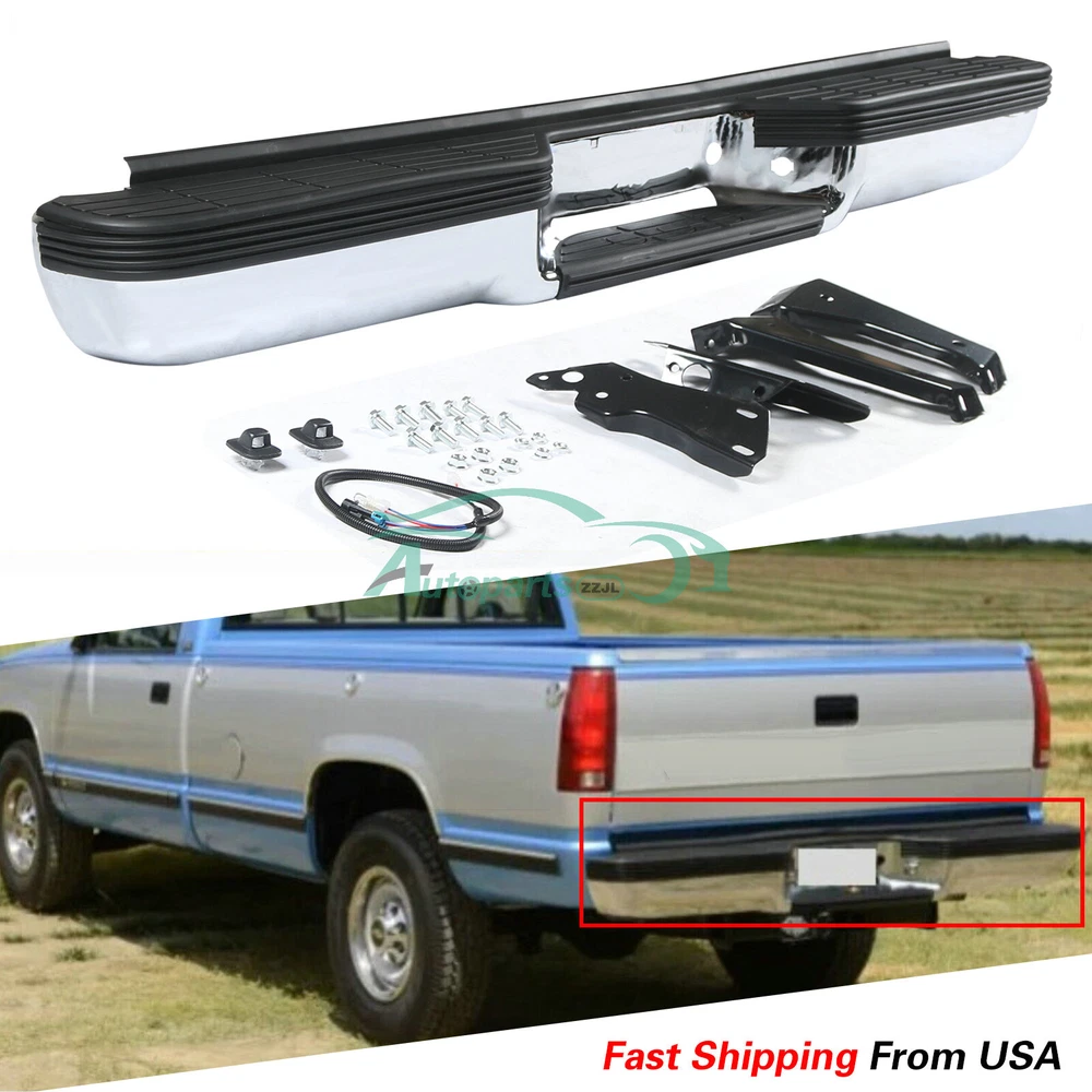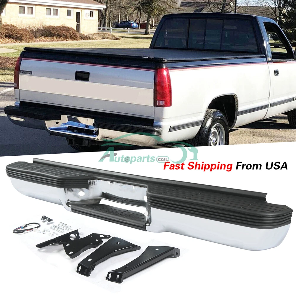 FITMENT Chevrolet 1988-1998 C1500 1988-1998 K1500 GMC 1988-1999 C1500 1988-1999 K1500 SPECIFICATION Color:Chrome & Black Finish:Polished Chrome Placement on Vehicle:Rear INCLUDE Step Bumper Black Pad(s), Bolt Kit License Plate Lights Bracket(s), On Jun 27, 2024 at 17:39:51 PDT, seller added the following information: On Jul 31, 2024 at 18:20:19 PDT, seller added the following information: On Oct 20, 2024 at 21:03:06 PDT, seller added the following information: On Oct 21, 2024 at 18:12:08 PDT, seller added the following information: On Oct 21, 2024 at 21:09:37 PDT, seller added the following information: On Dec 10, 2024 at 21:07:30 PST, seller added the following information: