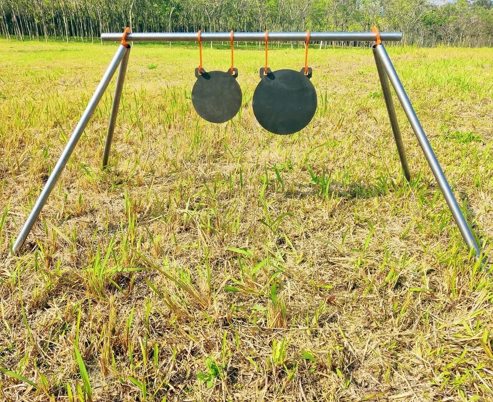 ▶ Steel target stand kit - Made of durable AR500 steel, target hook and leg bracket thicknesses are 1/4“, powder coated orange to prevent corrosion and rust. ▶ CNC laser cut - All target hooks and bracket are laser cut, hang anything up with the steel target stand kit. ▶ Ease of use - Setup the steel target stand and steel target hangers is super simple, you can complete in 1 minute or less. ▶ 1 inch EMT conduit not included - You can buy it at your local hardware store, suggest to buy a 10ft long 1 inch EMT conduit, please confirm the OUTER diameter of conduit less than 1.25". ▶ Shooting accessaries - Included 4 target hooks and 2 leg brackets.