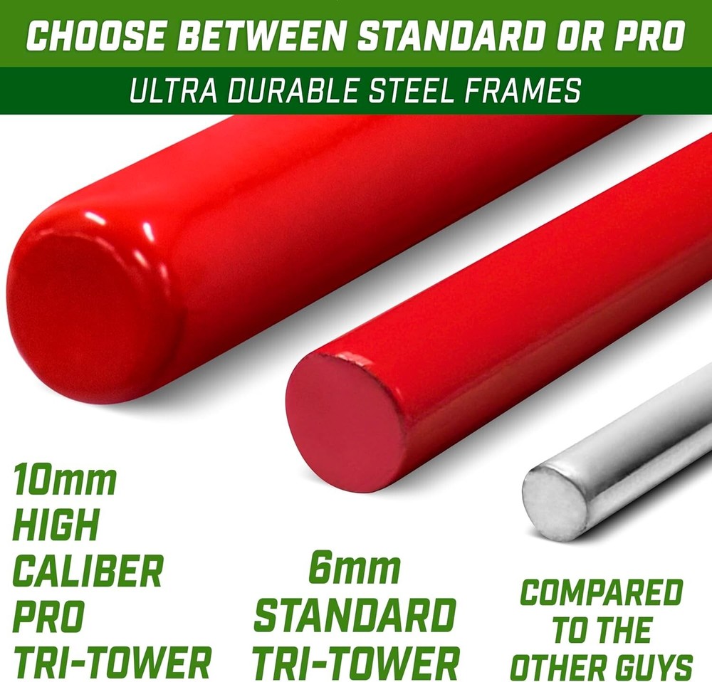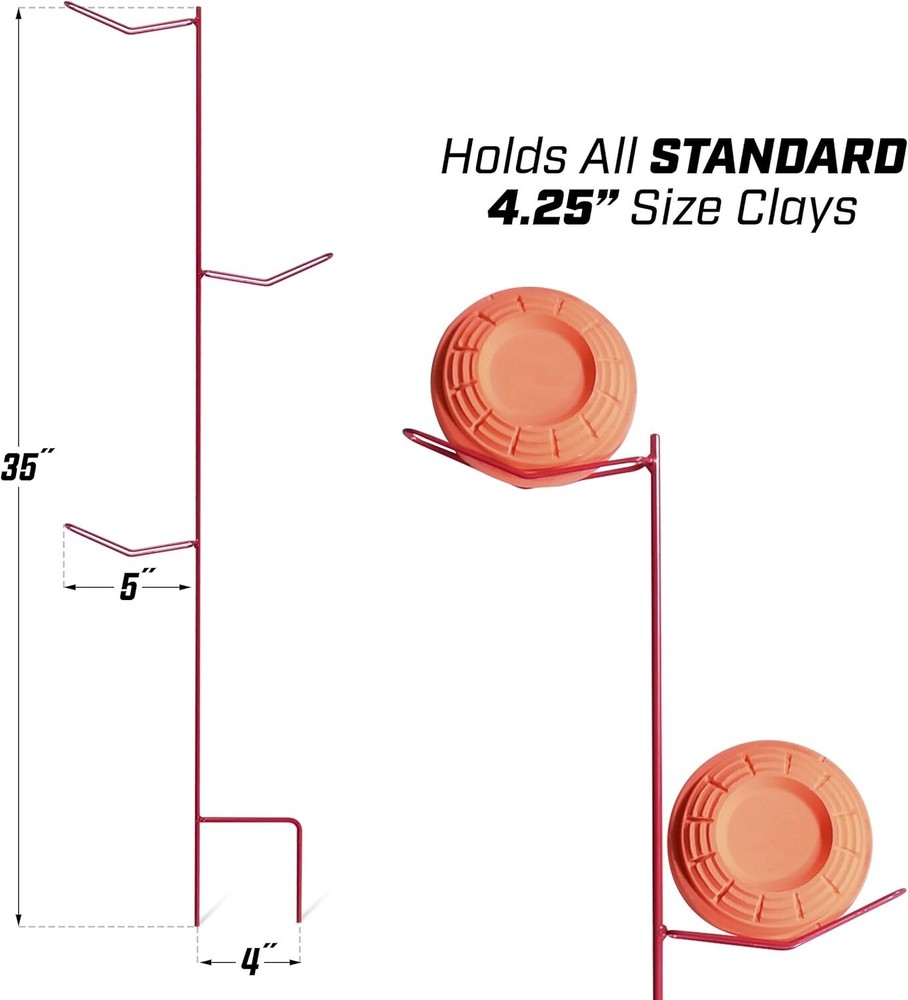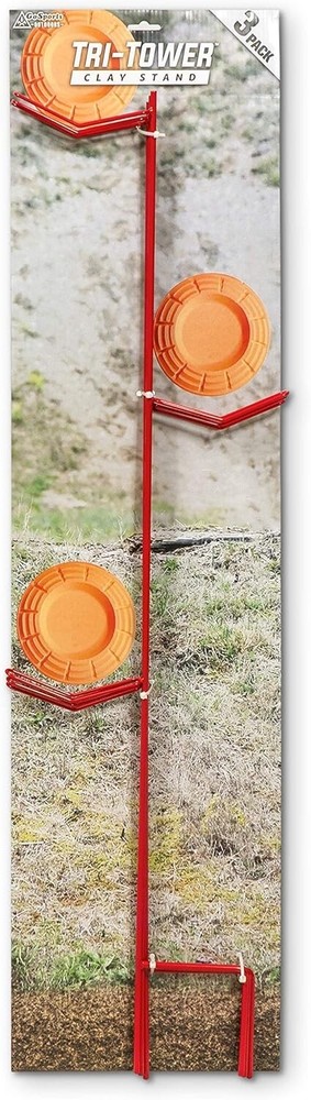 GoSports Outdoors Tri-Tower Steel Clay Pigeon Holder CLAY PIGEON HOLDERS: Includes 3 Tri-Tower Clay Pigeon holders featuring universal compatibility with all standard sized 4.25 in (108 mm) clay targets TRI-LEVEL DESIGN: Place as many as 9 clay targets at variable heights ranging from 12 to 34 inches high using the unique tri-level design (clay targets not included) THICK STEEL CONSTRUCTION: 6 mm thick steel frame featuring powder coated rust resistant construction for maximum durability EASY SETUP: Set up a variable distance shooting range; Fork base design makes it easier to stake stands in hard ground and prevents targets from rotating