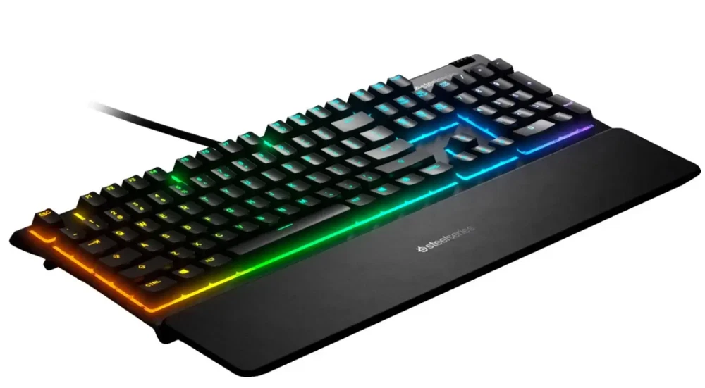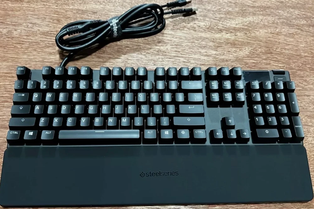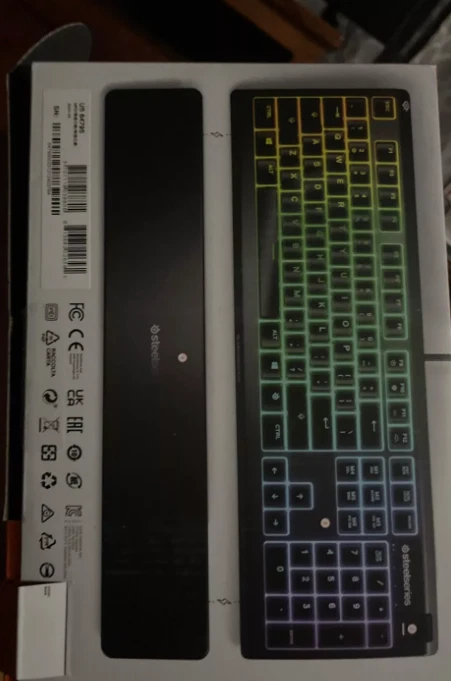The keyboard itself is in perfect condition and functions flawlessly. This is the Apex 3 Full Size Wired Membrane Whisper Quiet Switch Gaming Keyboard with 10-Zone RGB Backlighting It’s a full-sized, wired membrane keyboard that features water resistance, whisper-quiet switches, and vibrant RGB lighting for an enhanced experience. While it’s great for gaming, it’s also perfect for everyday use. It comes with a wrist pad that magnetically attaches to the keyboard for added comfort. The keyboard is compatible with PC, Mac, Xbox, and PS5, and it uses software called SteelSeries GG for customization and optimization the keyboard is like new and works perfectly.