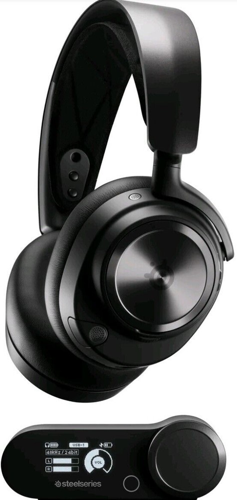 Preowned SteelSeries Arctis Nova Pro Wireless Over-Ear Gaming Headset Great working and cosmetic condition. Has been fully tested and ready to use. Shows signs of minor use. Comes with receiver, USB-C cabe and etc, as pictured.