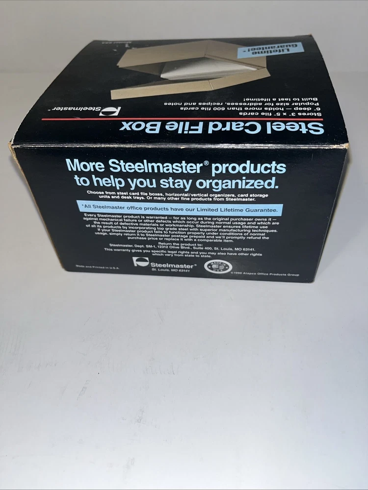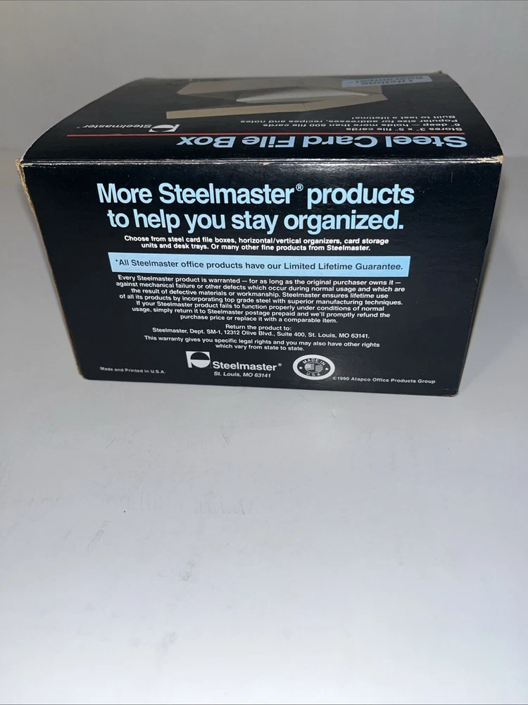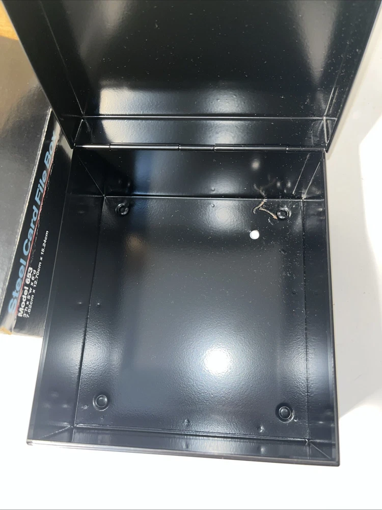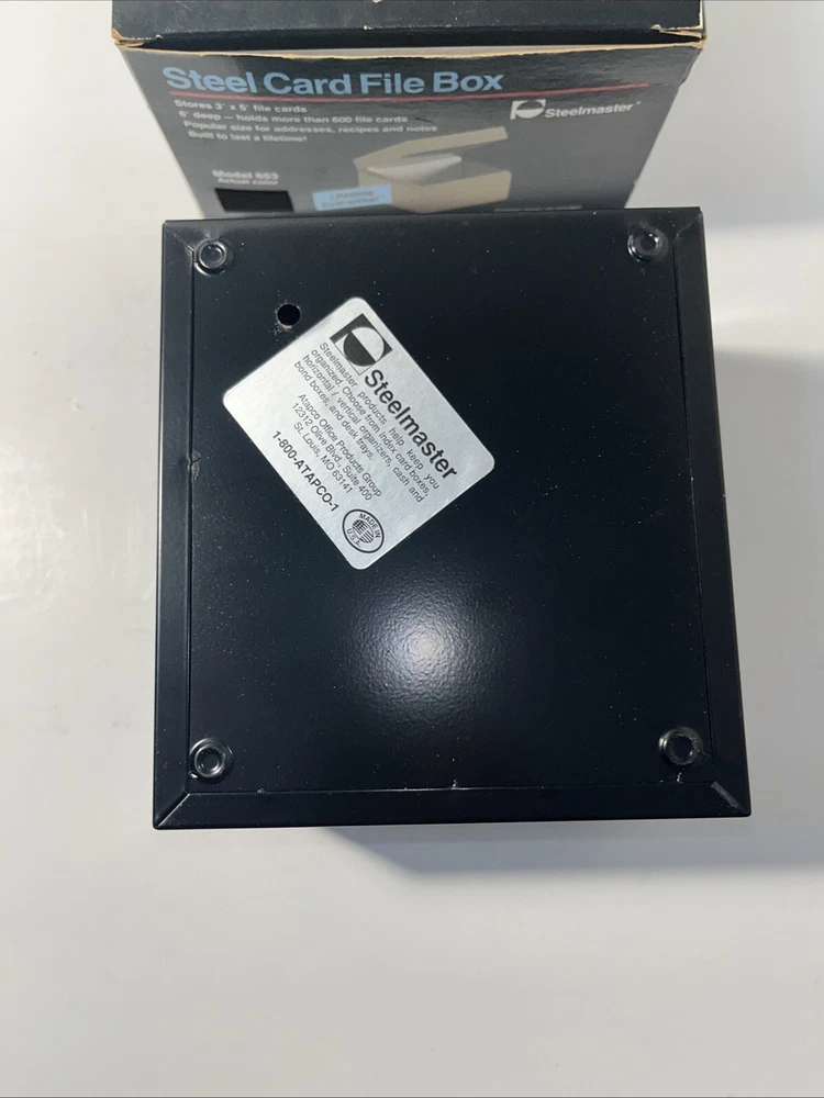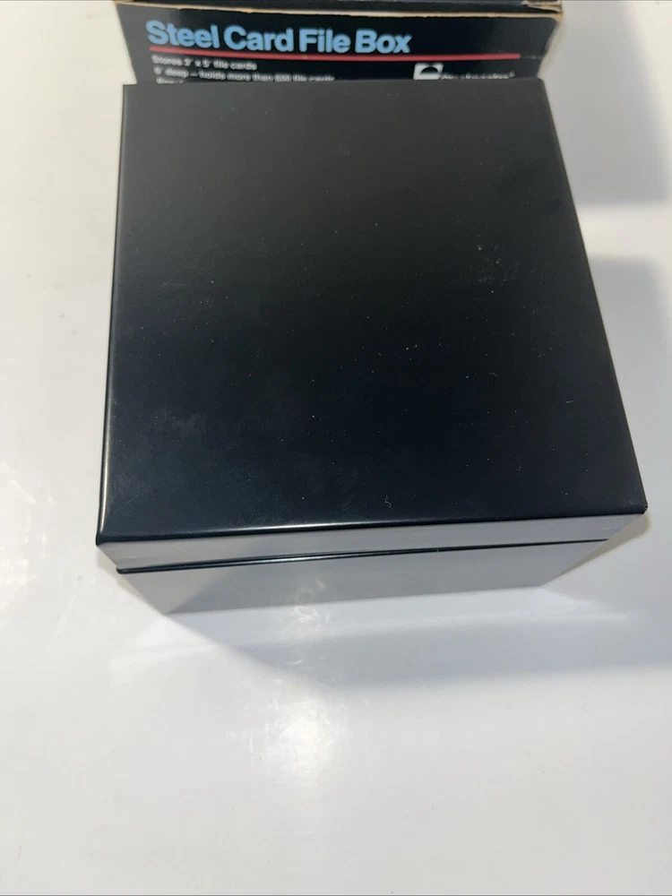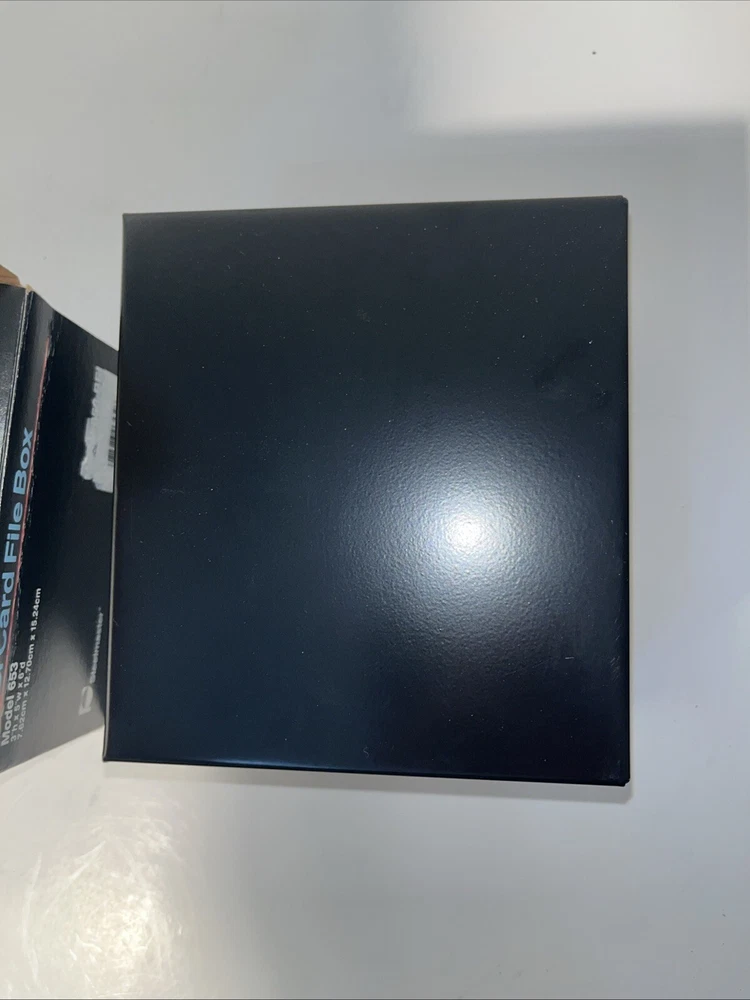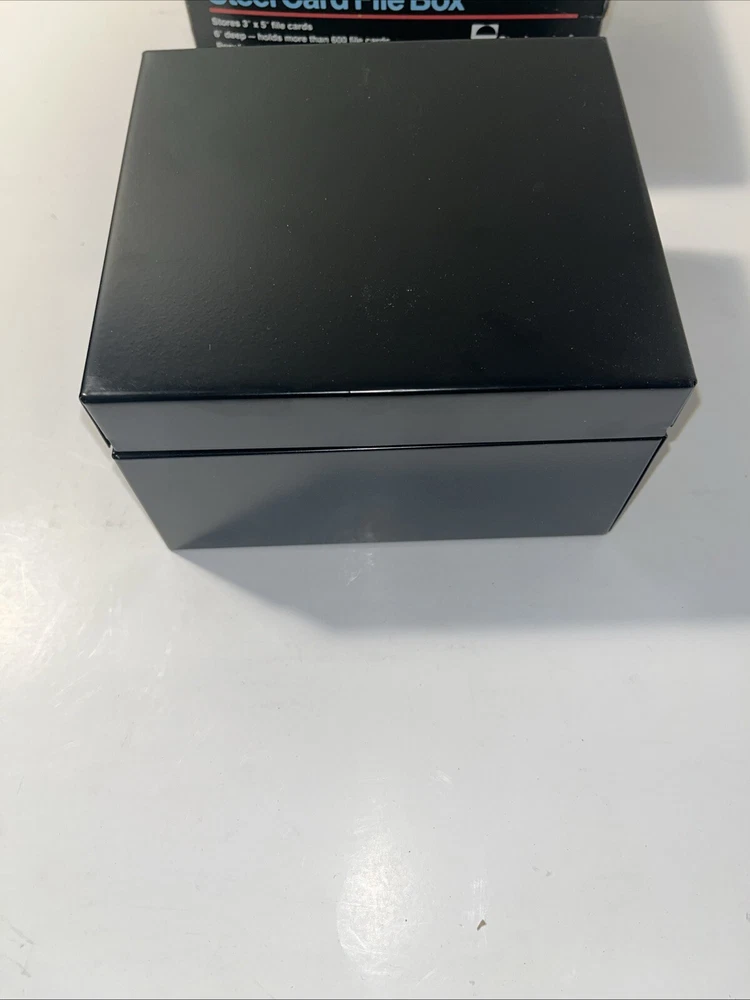 The Steelmaster Steel Card File Box Model 653 in Black is a sturdy and durable storage solution for organizing index cards or other small items. Made of steel, this card file box by Steelmaster is designed to keep your important documents or information secure and easily accessible. With its sleek black design, this new Steelmaster 653 card file box is perfect for use in homes, offices, or other professional settings where organization is key.