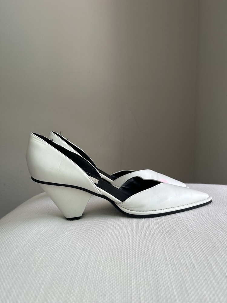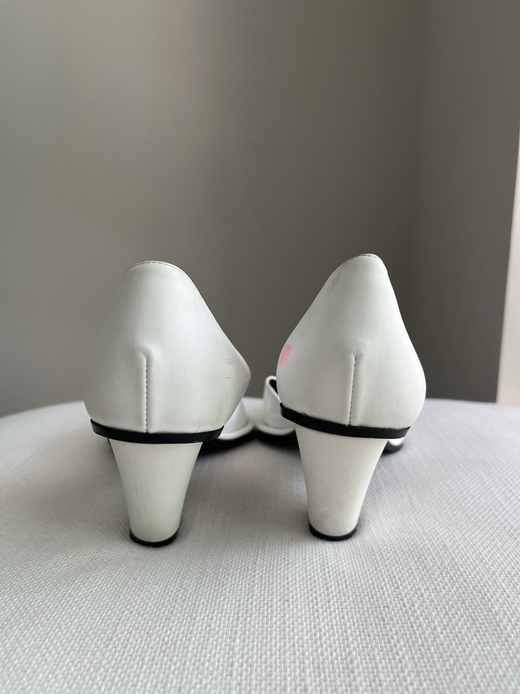 Step out in style with these elegant white women's shoes. Perfect for any occasion, these shoes offer both comfort and sophistication. There are slight signs of use, but they’re not really noticeable when worn. Size 36.5. Made in Italy. Come with dust bag.
