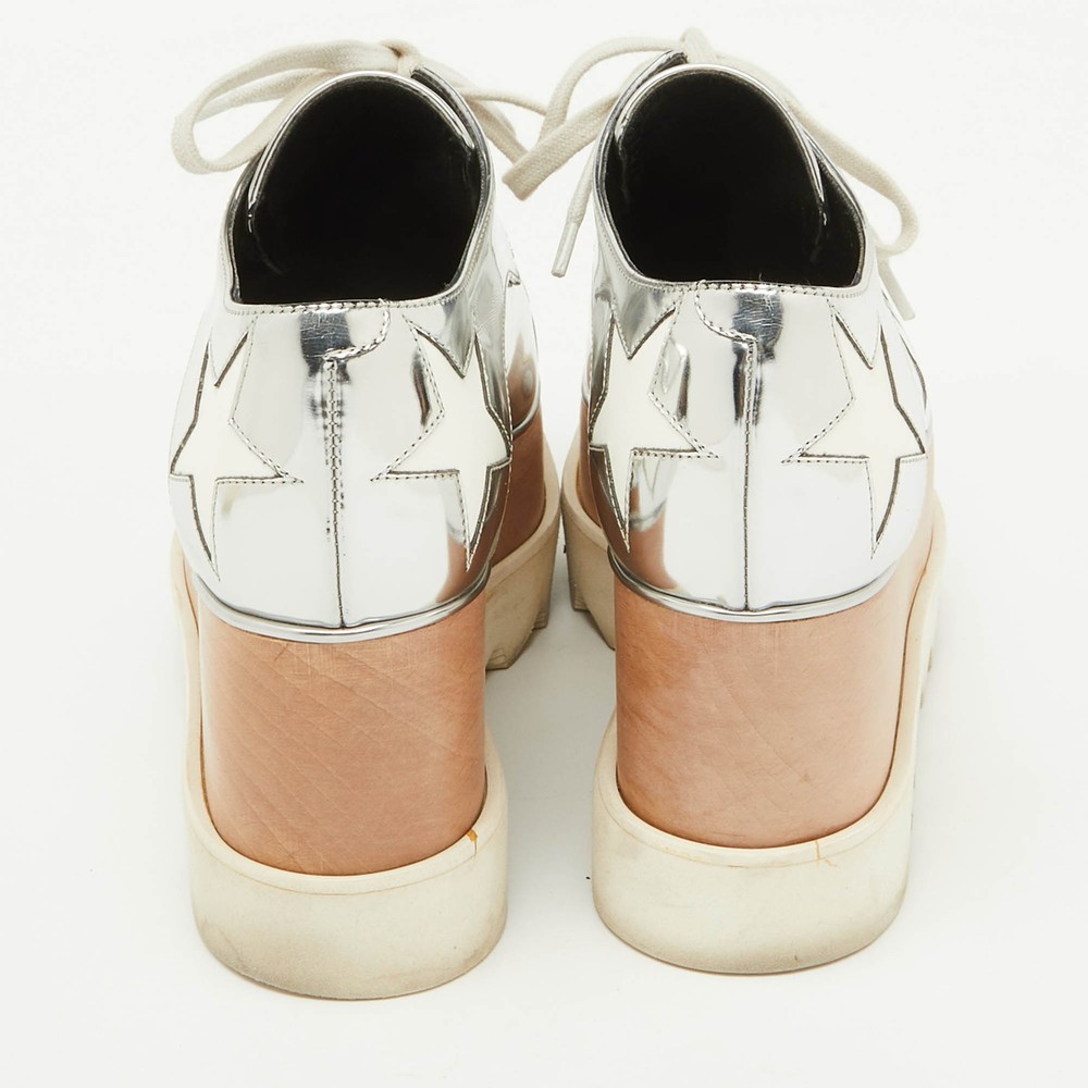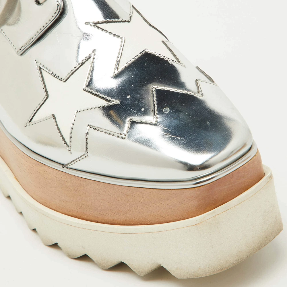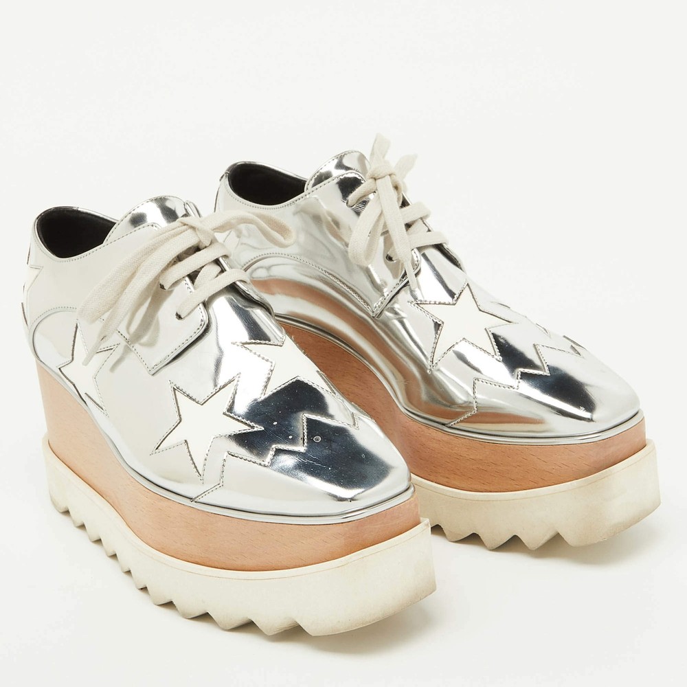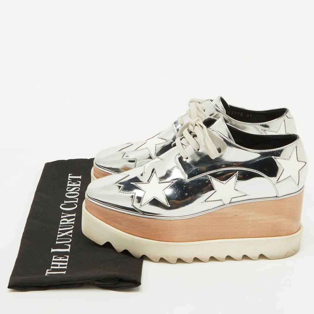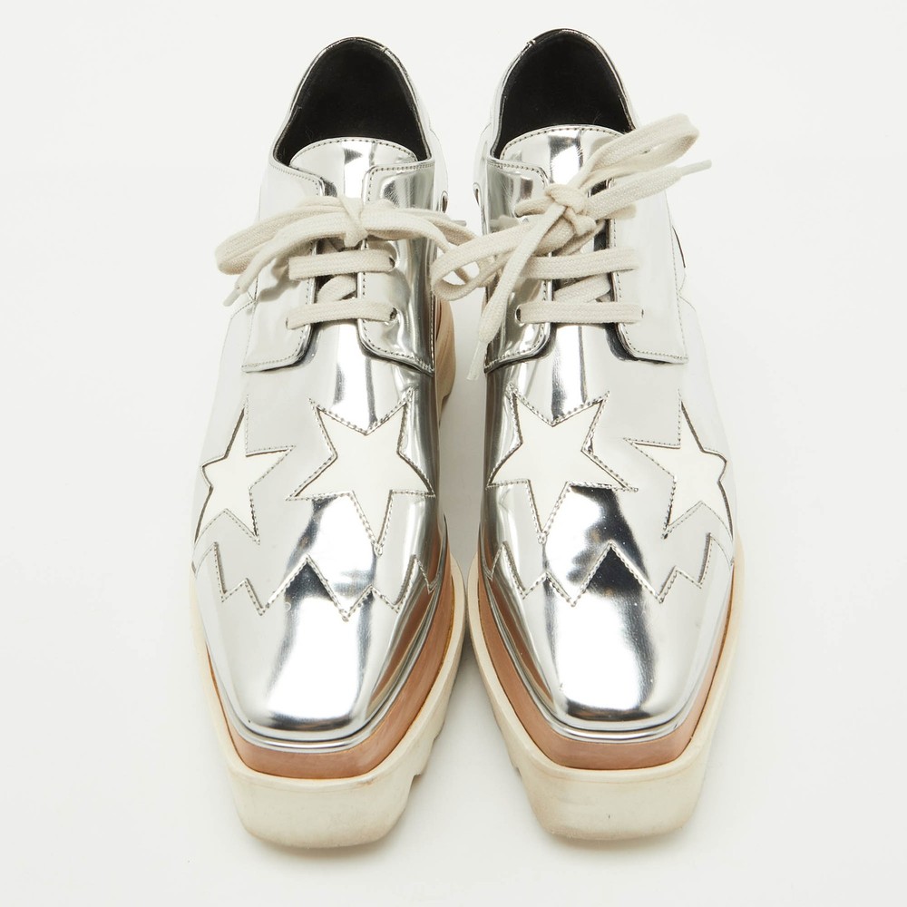 Our eBay Store About Us Contact Us Add to Favorite Sellers Stella McCartney SilverWhite Faux Leather Elyse Star Platform Derby Sneakers These Stella McCartney sneakers are all about making a statement while keeping comfort in check. The platform sole ensures you’ll glide through your day with ease, whether you’re running errands or meeting friends. Product Details Brand Stella McCartney Color Silver Includes The Luxury Closet Packaging Outsole Length 26 cm Outsole Width 8 cm Size 36 Certified by The Luxury Closet This item has gone through a detailed authentication process overseen by our experts. We offer a lifetime guarantee of authenticity on all our items. How We Check The in-house team of experts at The Luxury Closet is highly trained to verify the authenticity and the condition of the luxury products. They ensure that only 100% authentic items are put on sale.The evaluation process is unique with its own mix of assessment criteria and differs according to the category. Each item is evaluated based on the following combination of hallmarks, hardware, stitching, symmetry, material, craftsmanship, stamping, codes, hologram stickers, and packaging. Our authenticators also check if the items have been modified or amended (e.g., aftermarket diamonds, replaced batteries, repaired bags, etc.) International Buyers Import duties, taxes and charges are not included in the item price. These charges are the buyers responsibility. Please check with your country’s customs office to determine what these additional cost will be prior to buying.