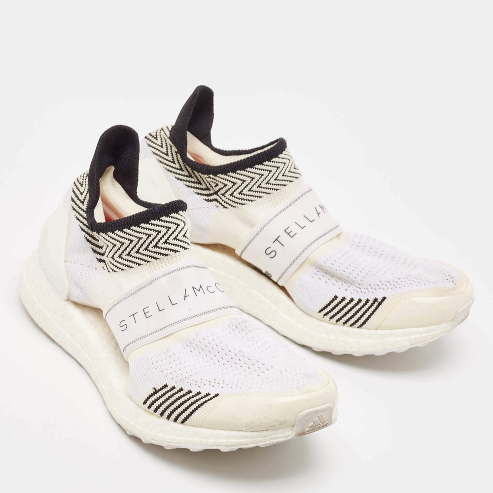 Our eBay Store About Us Contact Us Add to Favorite Sellers Stella McCartney x Adidas White Knit Fabric Ultra Boost x 3 D S Slip On When Stella McCartney's innovative designs and adidas' sporty aesthetic combine, amazing sneakers like these are created. They are made from knit fabric in a slip-on silhouette, encasing the foot in a supportive mold. They're designed for all surfaces and the rubber outsole has exceptional grip. Product Details Brand Stella McCartney Color White Includes The Luxury Closet Packaging Outsole Length 30 cm Outsole Width 10.5 cm Size 38.5 Certified by The Luxury Closet This item has gone through a detailed authentication process overseen by our experts. We offer a lifetime guarantee of authenticity on all our items. How We Check The in-house team of experts at The Luxury Closet is highly trained to verify the authenticity and the condition of the luxury products. They ensure that only 100% authentic items are put on sale.The evaluation process is unique with its own mix of assessment criteria and differs according to the category. Each item is evaluated based on the following combination of hallmarks, hardware, stitching, symmetry, material, craftsmanship, stamping, codes, hologram stickers, and packaging. Our authenticators also check if the items have been modified or amended (e.g., aftermarket diamonds, replaced batteries, repaired bags, etc.) International Buyers Import duties, taxes and charges are not included in the item price. These charges are the buyers responsibility. Please check with your country’s customs office to determine what these additional cost will be prior to buying.