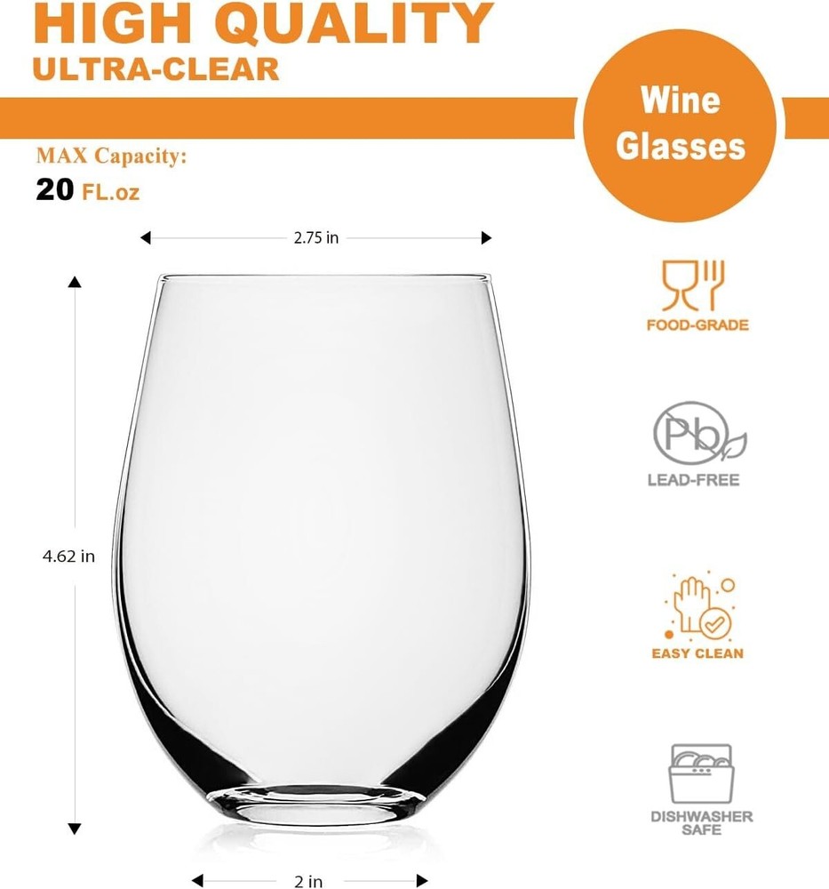 Dishwasher Safe Stemless Wine Glass Set - 20 oz Crystal Tumblers for Any Drink < class="slides"> ‹ › ‹ › ‹ › ‹ › ‹ › ‹ › ‹ › ‹ › ‹ › ‹ › ‹ › Dishwasher Safe Stemless Wine Glass Set - 20 oz Crystal Tumblers for Any Drink Features: Crafted with LASER COLD CUTTING PROCESS for ultra-thin, smooth rims that enhance your tasting experience. Elegant stemless design eliminates worries about fragile stems, allowing for an effortless grip. Perfectly shaped tulip bowl holds up to 20 fluid ounces, ensuring optimum aeration for your favorite wines. Lead-free crystal ensures safety without compromising on elegance. Remarkably durable, withstands temperatures from -68°F to 212°F, ensuring safe use in dishwashers, microwaves, and refrigerators. Benefits: Enhances the perceived quality and flavor of all types of red, white, and sparkling wines. Versatile tumblers perfect for cocktails, highballs, fresh juices, smoothies, and even water. Designed for comfort - curves to fit seamlessly in your hand for an enjoyable drinking experience. Effortlessly easy to clean and maintain, making it ideal for everyday use. Elevate your entertaining game with a touch of sophistication and style. Why Choose Our Stemless Wine Glass Set? Discover the perfect marriage of elegance and functionality with our Dishwasher Safe Stemless Wine Glass Set. Masterfully crafted using laser cold cutting technology, these beautifully designed crystal tumblers enhance the tasting experience while adding a modern touch to any occasion. Enjoy the robust flavors of Cabernet Sauvignon or the delicate notes of Chardonnay in style, all while having peace of mind that your glasses are durable enough for daily use. Whether you’re hosting a dinner party, enjoying a relaxing evening at home, or gifting to a loved one, these versatile glasses are a must-have addition to your glassware collection. Elevate each sip with our stunning set—order yours today! Shipping Free & Fast Shipping - We offer free shipping to most of the USA with a normal delivery time of 3-7 days. However, due to the current situation, additional delivery time (up to 3 weeks) may be required for some items. Alternative Carriers - We may use alternative carriers (e.g. USPS, FedEx, UPS, etc.) to ensure your package arrives safely and on time. Due to the use of multiple carriers, we are unable to provide a tracking number automatically. Handling Time - Orders are processed and shipped within 1-2 business days of receiving cleared payment. Shipping Restrictions - Shipping to Alaska, Hawaii, Puerto Rico, Guam, and other US territories may incur shipping charges or delivery restrictions. Please contact us before ordering, or your order can be refunded/cancelled. State Restrictions - There may be restrictions based on your state of purchase. For example, certain items may not be shipped to California due to state regulations. Contact for Tracking Updates - If you require tracking updates or have any concerns about the delivery of your order, please feel free to contact us, and we will be happy to assist you. Return 30-Day Hassle-Free Returns - We want you to be completely satisfied with your purchase. If you are not, you can return the item within 30 days of receiving it for a full refund or exchange. Easy Return Process - To start a return, simply contact us and we will provide you with a prepaid return shipping label and detailed instructions. Restocking Fee - There are no restocking fees for returns. However, the buyer is responsible for return shipping costs if the return is not due to a seller's error. Refund Processing Time - Refunds will be processed within 5 business days of receiving the returned item in its condition. Payment We accept all major credit cards, PayPal, and Apple Pay for your convenience. Your payment information is secure and encrypted to ensure a safe and seamless transaction. Please complete your payment within 3 days of purchase to avoid any delays in shipping. Feedback Your feedback is extremely important to us. We strive to provide the best products and customer service possible. If you are satisfied with your purchase, please take a moment to leave us a positive review. If you have any concerns or issues with your order, please contact us before leaving negative feedback. We are committed to resolving any problems and ensuring your satisfaction. Contact Us If you have any questions or concerns, please feel free to out to our customer support team. You can contact us through the eBay messaging system. We are available Monday to Friday, 9:00 am to 5:00 pm EST, and we will do our best to respond to your inquiry within 24 hours. Buy it now and enjoy a pleasant shopping experience! Unit Quantity: 6 Material: Crystal,Lead-Free Crystal Set Includes: Stemless Wine Glass Features: Dishwasher Safe,Microwave Safe Occasion: All Occasions,Christmas,Father's Day,Housewarming,Mother's Day,Wedding,Birthday,Thanksgiving Day Department: Adults Design: Stemless Type: Stemless Wine Glass Color: Clear Glassware Type: Wine Glass Service For: 6 Capacity: 20 oz Pattern: Solid Shape: Tulip Style: Modern Number of Items in Set: Six-Piece Care Instructions: Dishwasher Safe Item Weight: 1.25 lb Unit Type: lb