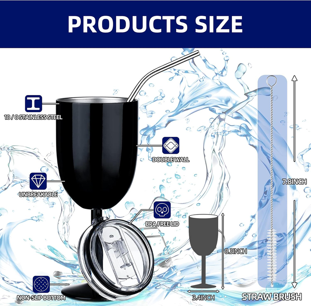 Store New Arrivals Add to Favorite View Feedback Contact Stemmed Stainless Steel Wine Glasses with Lid Double Wall Insulated Wine Tumbler Unbreakable Goblets with Drinking Straw and Straw Brush, 10 Oz(Black, White, Silver,3 Pieces) Description Item model number -Portable-1001 Style Modern Number of Items 1 Pattern Solid Country of Origin China Theme Wine Unit Count 3.0 Count Material Stainless Steel Capacity 10 ounces Age Range (Description) Adult Material Type Free BPA Free Reusability Reusable Item Package Quantity 3 Item Weight 10 ounces Occasion Daily Item Weight 10 Ounces Material Feature Insulated Special Feature Double Wall Color Black, White, Silver Shape Round Recommended Uses For Product Home Included Components Lid, Straw Product Dimensions 3.3"W x 8.7"H Product Care Instructions Machine Wash, Hand Wash Only Size 12 Count (Pack of 1) Package includes: you will receive 3 pieces of stainless steel stemmed wine glasses with lids, 3 pieces of stainless steel drinking straws and 3 pieces of straw brushes, enough quantity and different colors can meet your daily needs Quality material: these double wall insulated wine tumblers are made of stainless steel, smooth appearance, comfortable to touch, no bad smell, and not easy to break or rust, beautiful metal luster, which are durable and reliable, can serve you for a long time Exquisite design: these unbreakable goblets are designed in elegant rose gold, which give you a wide choice to match your mood, and the lid surface is designed with straw holes, which the sweet design is convenient for you to suck with a straw Easy to clean: these stainless steel wine tumblers have a large and wide mouth, smooth surface, which are convenient to clean with hands, and the drinking straws are paired with brushes, so that you can clean the straws easier and more convenient Wide applications: these insulated wine glasses are suitable for home, camping, travel, sports, outdoors, boating, grilling out, or other outdoor activities, and they are safe for children, teenagers and adults, beautiful colors and not easy to break Features: Delicate presents: These delicate wine glass sets are delicate presents for your friends, colleagues, family members, girlfriends and so on for Christmas, Valentine's Day, Mother's Day, Father's Day, weddings, anniversaries, birthdays, housewarmings, graduations or other holidays. Suitable size: Each chic stainless steel wine glass measures approx 22 cm/ 8.7 inches long, and the diameter of the rim of the goblet is about 8.5 cm/ 3.3 inches, and the capacity is 300 ml/ 10 oz, which the proper size is suitable for drinking coffee, wine, cocktail, or other hot or cold drinks. Specifications: Color: as pictures shown Material: stainless steel Length: 22 cm/ 8.7 inches Capacity: 300 ml/ 10 oz Package includes: 3 x Stainless steel wine glasses 3 x Drinking straws 3 x Straw brushes Note: Please allow a little error in size, due to manual measurement. The color might exist slight differences, due to different displays. ABOUT US We offer the best prices around on high quality products. Our E-store includes media such as books, movies, music and games while offering electronics, toys, sporting apparel, clothing, tools, general home, garden items and more. SHIPPING We are always working hard to ensure your package arrives as soon as possible. Please understand that some factors like weather, high postal traffic, and the performance of shipping companies are outside of our control. We offer free shipping to the lower 48 states and ship within 2 business days of payment, usually sooner. We do not accept P.O. Boxes. Please provide a physical address. For shipping outside of the continental USA, we only use eBay's Global Shipping Program.The item is shipped to KY and then sent to the rest of the world. International customers are responsible for all duties and taxes. Continue to check out in order to calculate costs for shipping the item to your country. Messages regarding eBay's Global Shipping Program MUST be directed at eBay EXCLUSIVELY. RETURNS We offer a 30-Day Return Policy on items which you are not completely satisfied with. You have the option for a full-refund or an exchange of the item. No returns are available on items shipped outside of the USA. PAYMENT We accept PayPal. CONTACT US This page content is yet to come Please ad us to your favorite seller and visit again later Thank You CUSTOMER SATISFACTION We try our very best to make sure every customer is completely satisfied. If there's a problem, message us! We're happy to help. WE ACCEPT Copyright © 2021 AutoDS. | All Rights Reserved