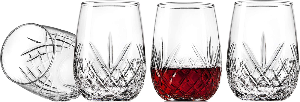 Dublin crystal collection wine glasses are meticulously crafted in Italy. These beautiful stemless wine glass goblets compliment any decor. Perfect for red wines or white wines. Brilliant classic design cups will impress for years to come. Lead Free. Dishwasher Safe. Capacity: 16oz MADE IN ITALY - Set of 4 Since 1973 Godinger has specialized in handcrafted silver, pewter, crystal, stainless, and alternative metal giftware. From wedding gifts, candlesticks, barware, bakeware, tea sets and frames, you are sure to find the perfect item for any special occasion. Godinger products are available at all major retailers across the US and Canada. Godinger Wine Glasses Stemless Goblet Beverage Cups, Italian Made - Dublin Collection, 16oz, Set of 4