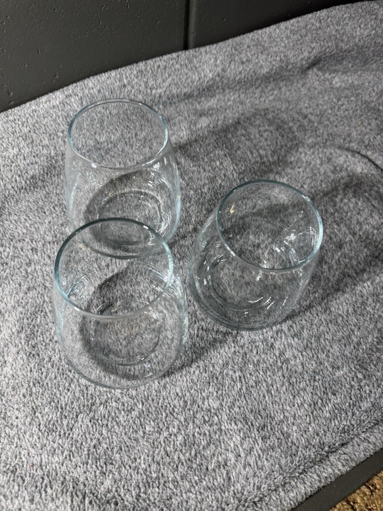 Elevate your drinking experience with these modern, stemless wine glasses. Crafted from high-quality glass material, these clear glasses are perfect for all occasions. The round shape and 3-inch height and width provide a comfortable grip and easy drinking experience. This set includes three stemless wine glasses, making it perfect for sharing with friends and family. The glasses are personalized to suit your style and taste, adding a touch of elegance to your drinkware collection. Impress your guests and enjoy your favorite wine with these stylish and functional glasses.