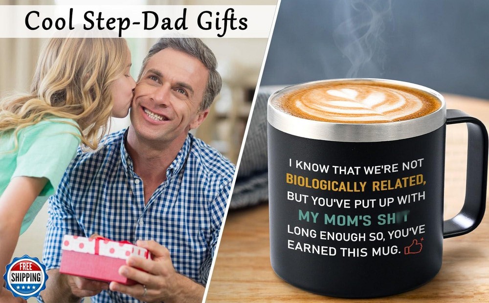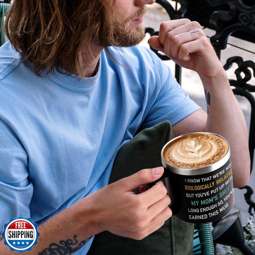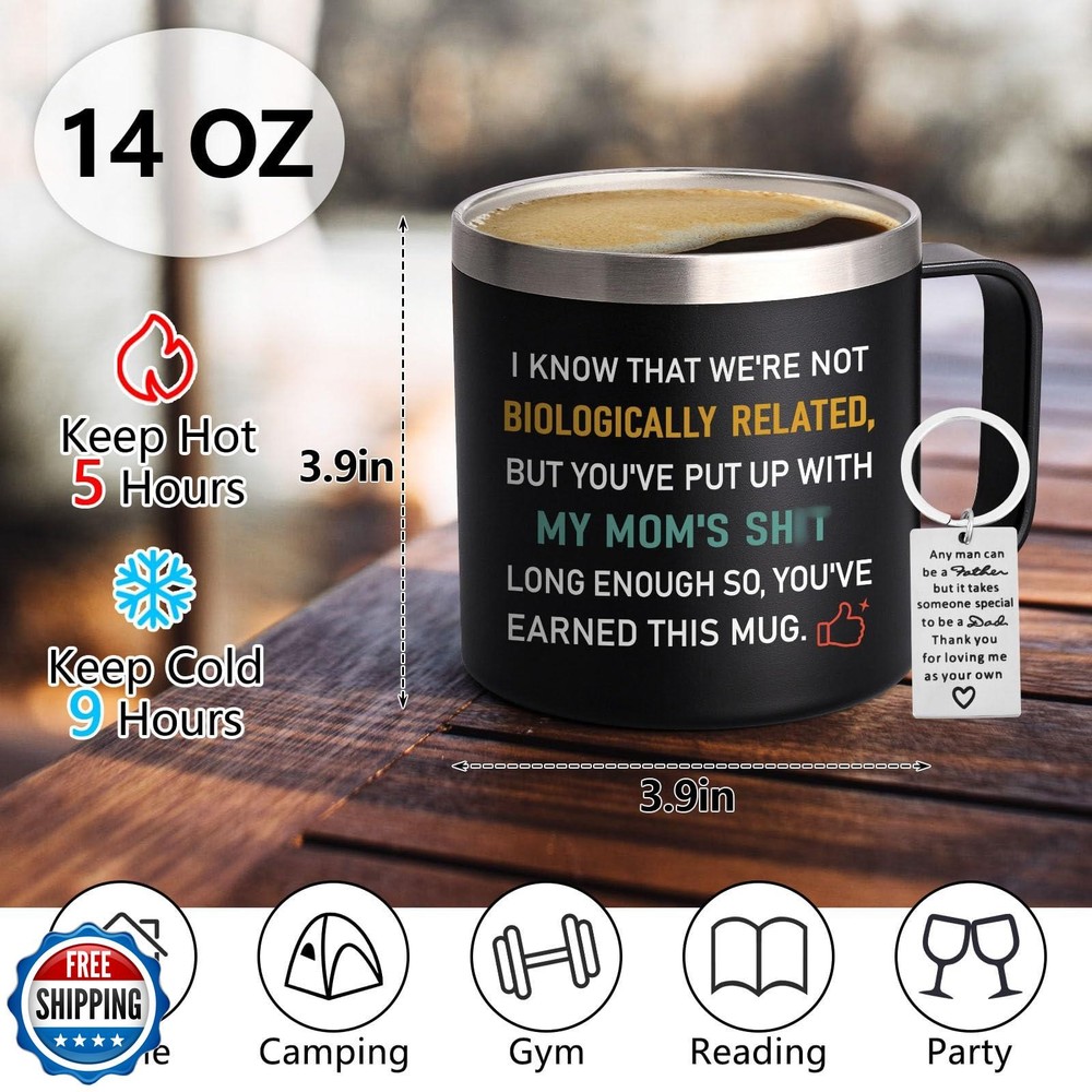 Qtencas Step Dad Gifts, I Know That We're not Biologically Related Coffee Mug, Bonus Dad Gifts, Funny Birthday Christmas Fathers Day Gift for Step Dad Bonus Dad Step-Father,14oz Travel Mug, Black Features [Step Dad Father’s Day Gifts]: Are you searching for an exceptional present to convey your affection and gratitude for Father's Day, Christmas, or a birthday? Consider our Step Dad Gifts 14 oz Insulated coffee mug with handle as an ideal way to honor his unrelenting love and dedication. This thoughtful token is a perfect choice to show appreciation for your stepdad, step father, bonus dad, or dad. [Thoughtful Gifts for Bonus Dad]: Our step father gift box includes a range of practical items sure to bring joy to your bonus dad. The set features a 14 oz coffee mug with handle, a key chain, a spoon, a BPA-free lid, a straw, a straw brush, a cup brush, and a stylish gift box. Receiving this stepdad gift for father’s day will certainly make him feel appreciated and loved. [18/8 Stainless Steel with Good Insulation]: Our dad mug isn't just a pretty face-it's crafted from 18/8 stainless steel for rust resistance and flavor retention. Employing advanced insulation technology, it ensures your cold water, coffee, juice, or any beverage stays chilled for up to 9 hours, and warm for 6 hours. Whether you’re at work or resting at home, it delivers enduring freshness. [Comfortable Handle]: Expertly fashioned with an ergonomic design, this handle is the epitome of comfort. The easy-grip offers convenience and a sense of reliability. No matter how hot the drink inside, the handle remains cool to touch. The handle design also ensures that the stepdad mug remains stable, minimizing the risk of accidental spills. [Easy to Clean]: Convenience is especially important in a busy work environment. Our travel mug is designed with ease of use in mind. The smooth interior surface prevents any residue or stains from sticking, making it effortless to clean. It is also dishwasher safe, saving your valuable time and effort. With this mug, they can enjoy their favorite beverages without worrying about the hassle of cleaning up afterwards. Shipping Free & Fast Shipping: We offer free shipping to most of the USA with a normal delivery time of 3-7 days. However, due to the current situation, additional delivery time (up to 3 weeks) may be required for some items. Alternative Carriers: We may use alternative carriers (e.g., USPS, FedEx, UPS) to ensure your package arrives safely and on time. Due to the use of multiple carriers, we are unable to provide a tracking number automatically. Handling Time: Orders are processed and shipped within 1-2 business days of receiving cleared payment. Shipping Restrictions: Shipping to Alaska, Hawaii, Puerto Rico, Guam, and other US territories may incur shipping charges or delivery restrictions. Please contact us before ordering, or your order can be refunded/cancelled. State Restrictions: Certain items may not be shipped to California due to state regulations. Contact for Tracking Updates: If you require tracking updates or have any concerns about the delivery of your order, please feel free to contact us, and we will be happy to assist you. Return Policy 30-Day Hassle-Free Returns: If you are not completely satisfied with your purchase, you can return the item for free within 30 days of receiving it for a full refund or exchange. Easy Return Process: Contact us, and we will provide you with a prepaid return shipping label and detailed instructions. No Restocking Fee: There are no restocking fees for returns. However, the buyer is responsible for return shipping costs if the return is not due to a seller"s error. Refund Processing: Refunds will be processed within 1 business day of receiving the returned item in its original condition. Feedback Your feedback is extremely important to us. We strive to provide the best products and customer service possible. If you are satisfied with your purchase, please take a moment to leave us a positive review. If you have any concerns or issues with your order, please contact us before leaving negative feedback. We are committed to resolving any problems and ensuring your satisfaction. Contact Us If you have any questions or concerns, please feel free to reach out to our customer support team. You can contact us through the eBay messaging system. We are available Monday to Friday, 9:00 am to 5:00 pm EST, and we will do our best to respond to your inquiry within 24 hours. Thank you for supporting our small family business!