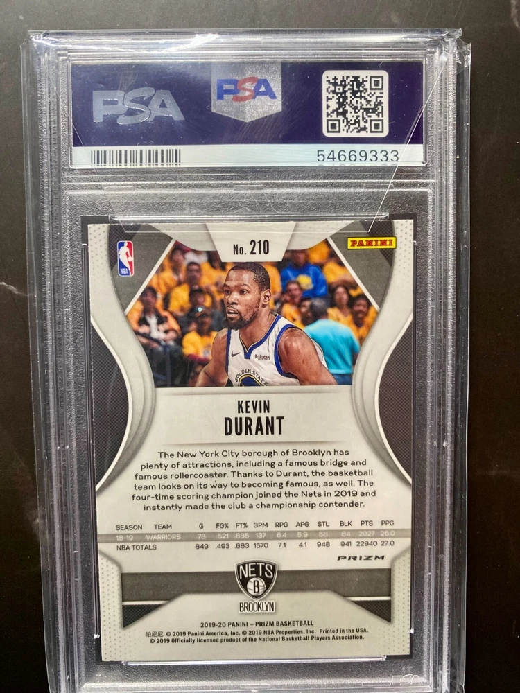 Description: This exceptional lot features three highly sought-after and graded basketball cards of NBA superstars: 2009-10 Rookie Phenoms Stephen Curry Platinum Promo Rookie #/2000 | Graded Gem Mint 10 by PRO Grading | Golden State Warriors: This is a limited edition rookie card of Stephen Curry, graded in pristine condition by PRO Grading. 2019-20 Panini Donruss Optic Giannis Antetokounmpo "T-Minus 3, 2, 1" Purple #8 | PSA 9.5 | Milwaukee Bucks: This card showcases Giannis Antetokounmpo, the reigning NBA MVP, in the highly coveted "T-Minus 3, 2, 1" Purple parallel. 2019-20 Panini Prizm Kevin Durant #210 | Green Prizm /199 | PSA 10 Gem Mint | Brooklyn Nets: This is a limited edition Green Prizm parallel of Kevin Durant, graded Gem Mint 10 by PSA, showcasing his time with the Brooklyn Nets. Shipping: All cards will be shipped securely in their original graded holders with appropriate packaging to ensure safe delivery. Bonus! A surprise bonus card will be included with your purchase! This could be another card from the 2021 Panini Mosaic set, a card from a different player, or a unique insert card. It's a mystery, so you'll have to wait and see!