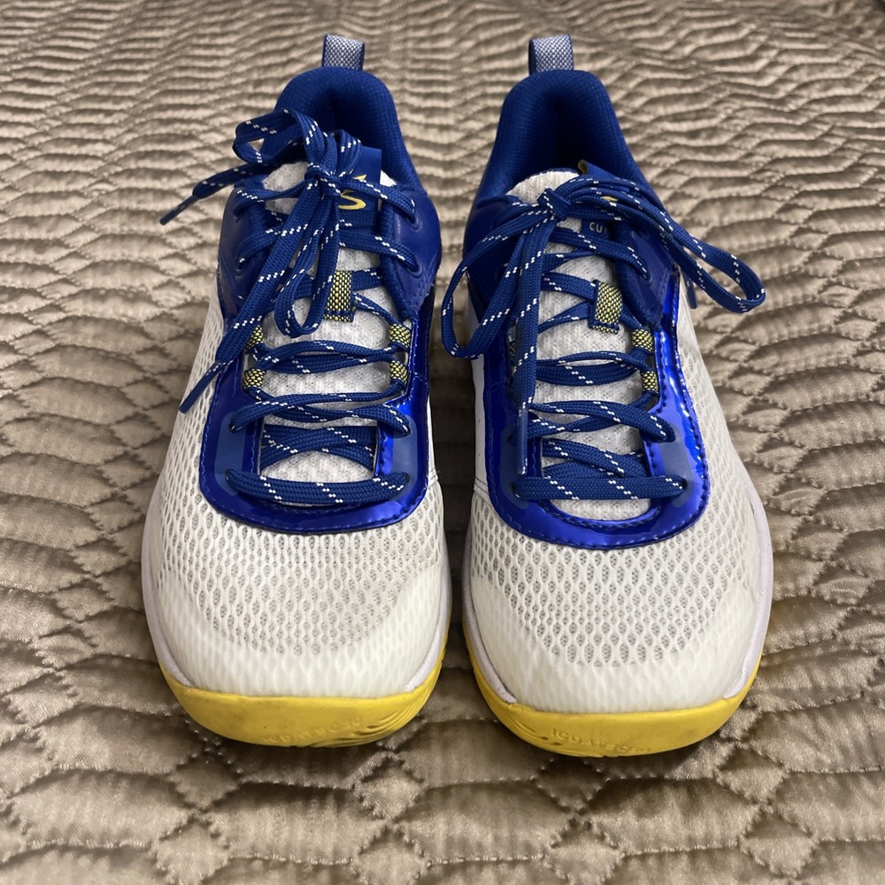 The Steph Curry UA Youth 5 Low Basketball Shoes are a stylish and comfortable option for young boys who love basketball. Featuring a round toe shape, lace-up closure, and moderate cushioning level, these sneakers are perfect for casual or activewear. The white color with the signature Steph Curry logo accents add a touch of sports-themed flair to the design. Made with a rubber outsole for traction, these shoes are suitable for summer, fall, and spring seasons. The synthetic upper material and foam insole provide durability and comfort for active kids on the court.