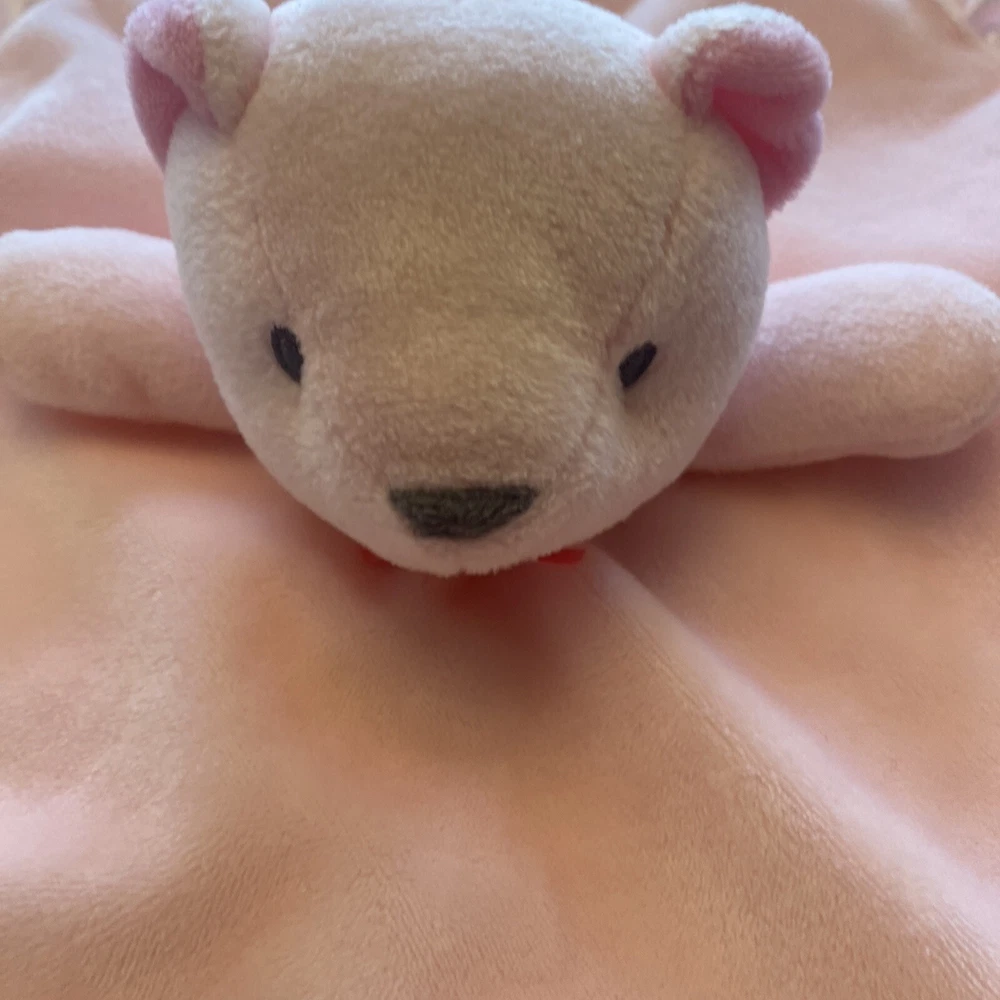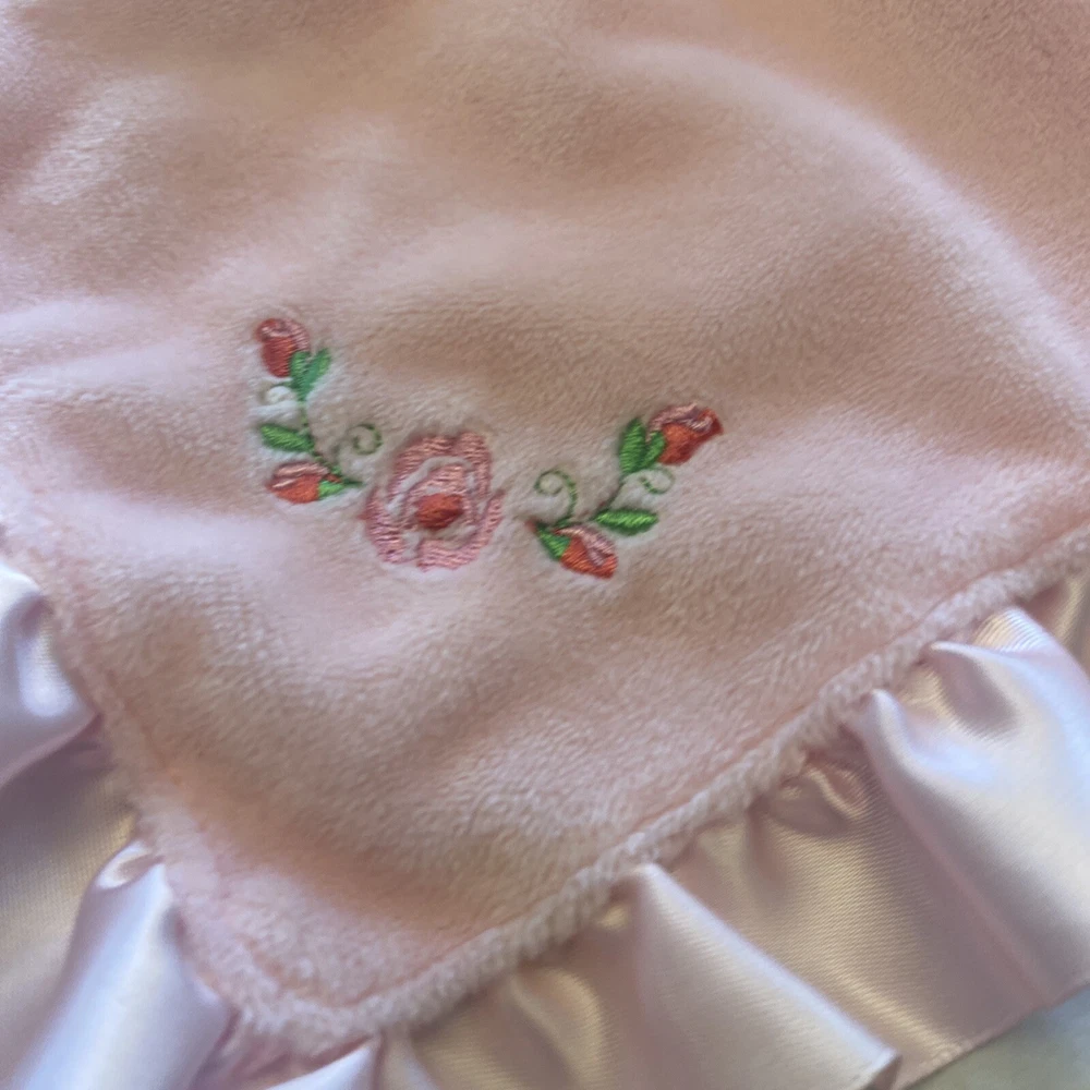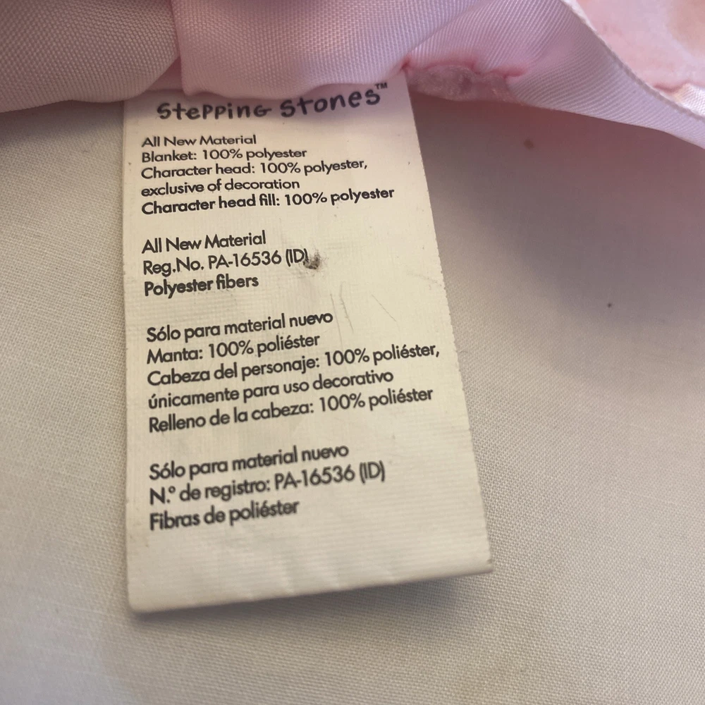 Brand:Stepping StonesType:Security BlanketColor:PinkSize:13" x 13"Theme:Teddy Bear FlowersGender:GirlsUPC:Does not applygtin13:Does not applyModel:Stepping StonesMaterial:PolyesterSeller Notes:“Very good condition...does have a pull on the back satin”