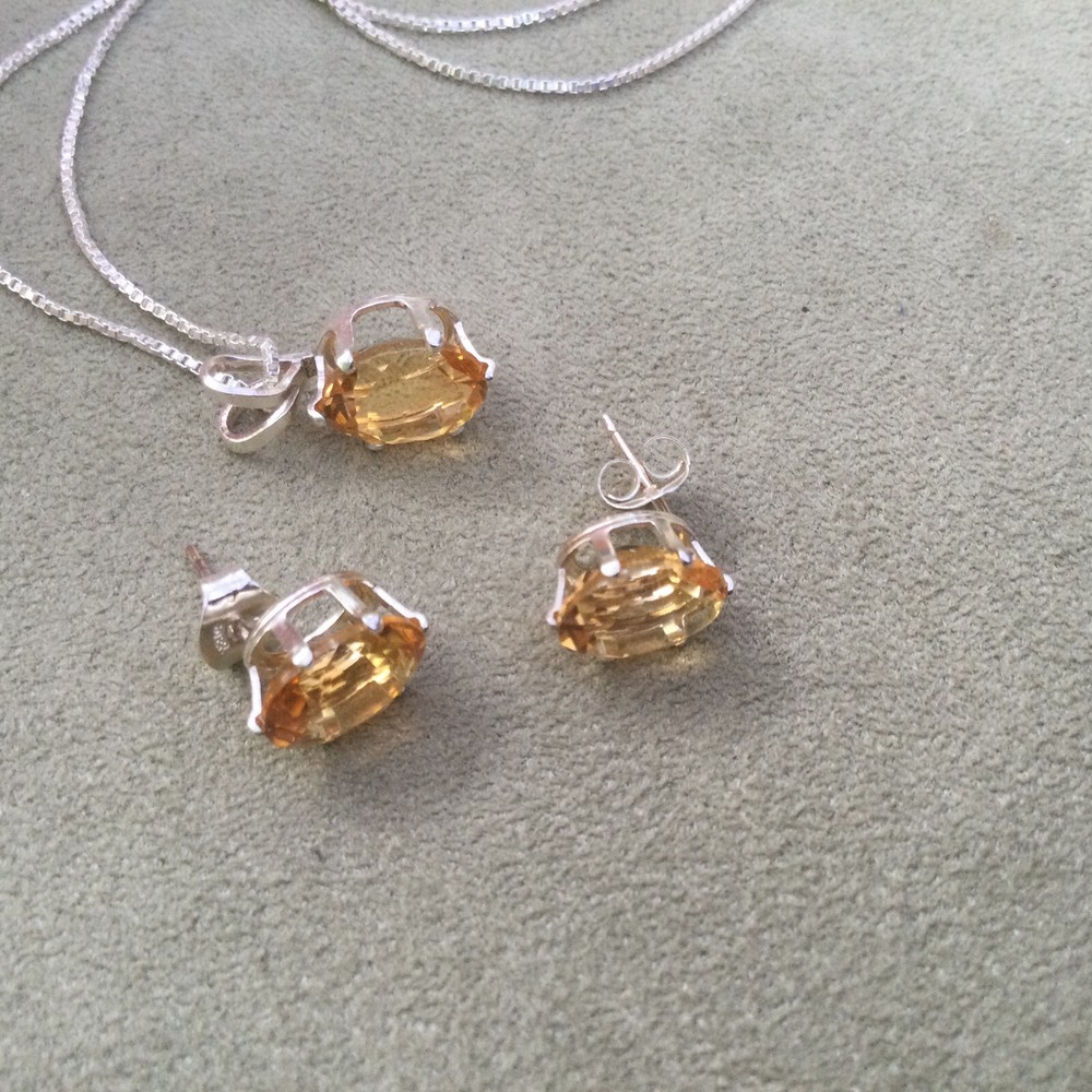 Sterling Silver 18" Box Chain with Pendant and Stud Earrings Set. Oval 8mm x 6mm Citrine. New, never used, great condition. InvN/ES/5/ 22