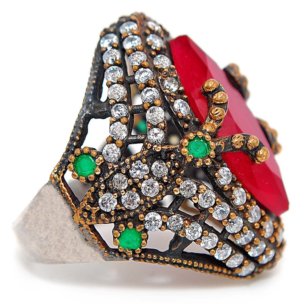 Sterling Silver 4CT Treated Ruby Ottoman Empire Style Ring Size 7