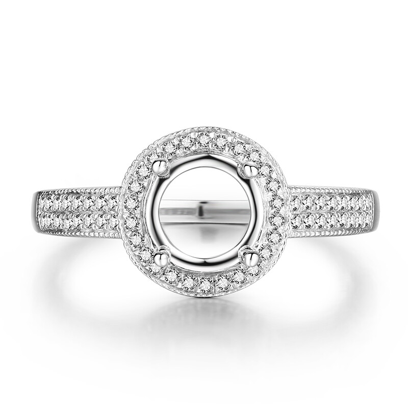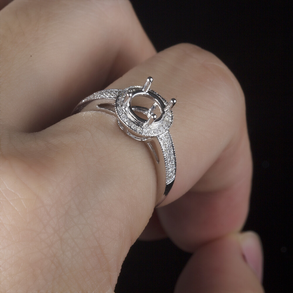 Sterling Silver 8mm Round SI2 Diamond Semi Mount Engagement Ring