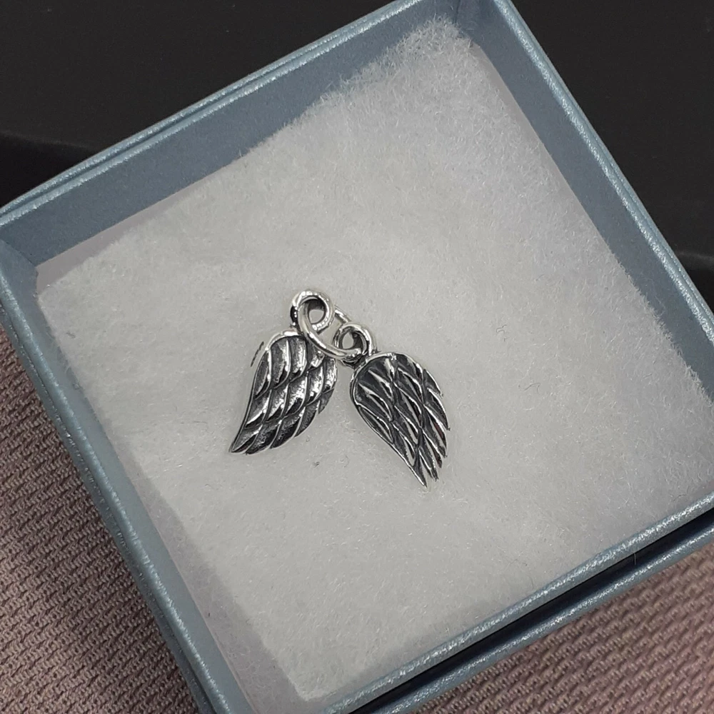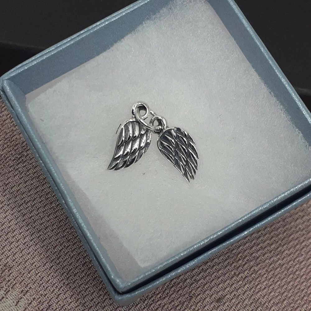 Double Angel Wing Charm Pendant Necklace- Sterling Silver 925 The "Goddess Collection" - Gift- Yourself- Friends- Family- Loved One Option to buy with a 16" or 18" Sterling Silver 925 Chain The chain will be either a Curb Diamond Cut or Oval Link Cable Chain depending on stocks available- please see the pictures for 1 of the chains you will receive-Thank you Part of the " Goddess Collection"- made for us from our friendly Wholesalers based on our ideas and designs The Angel Wings Charm Necklace is a nice weight and depth and also double sided The Angel Wings Necklace will come in a Gift Box for you Size : The Angel Wing is 15 mm x 10 mm approx - The drop size is not including the jump rings If you have any questions Please ask me Thank you for Looking Sarah
