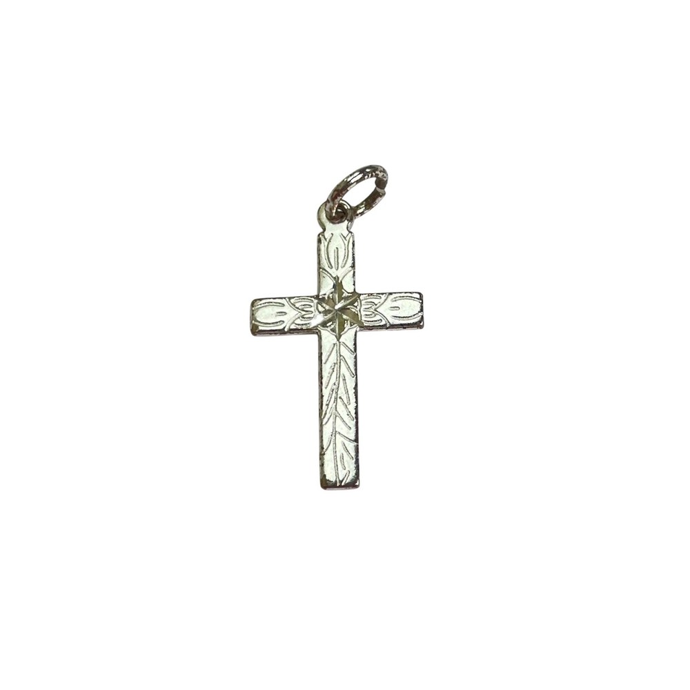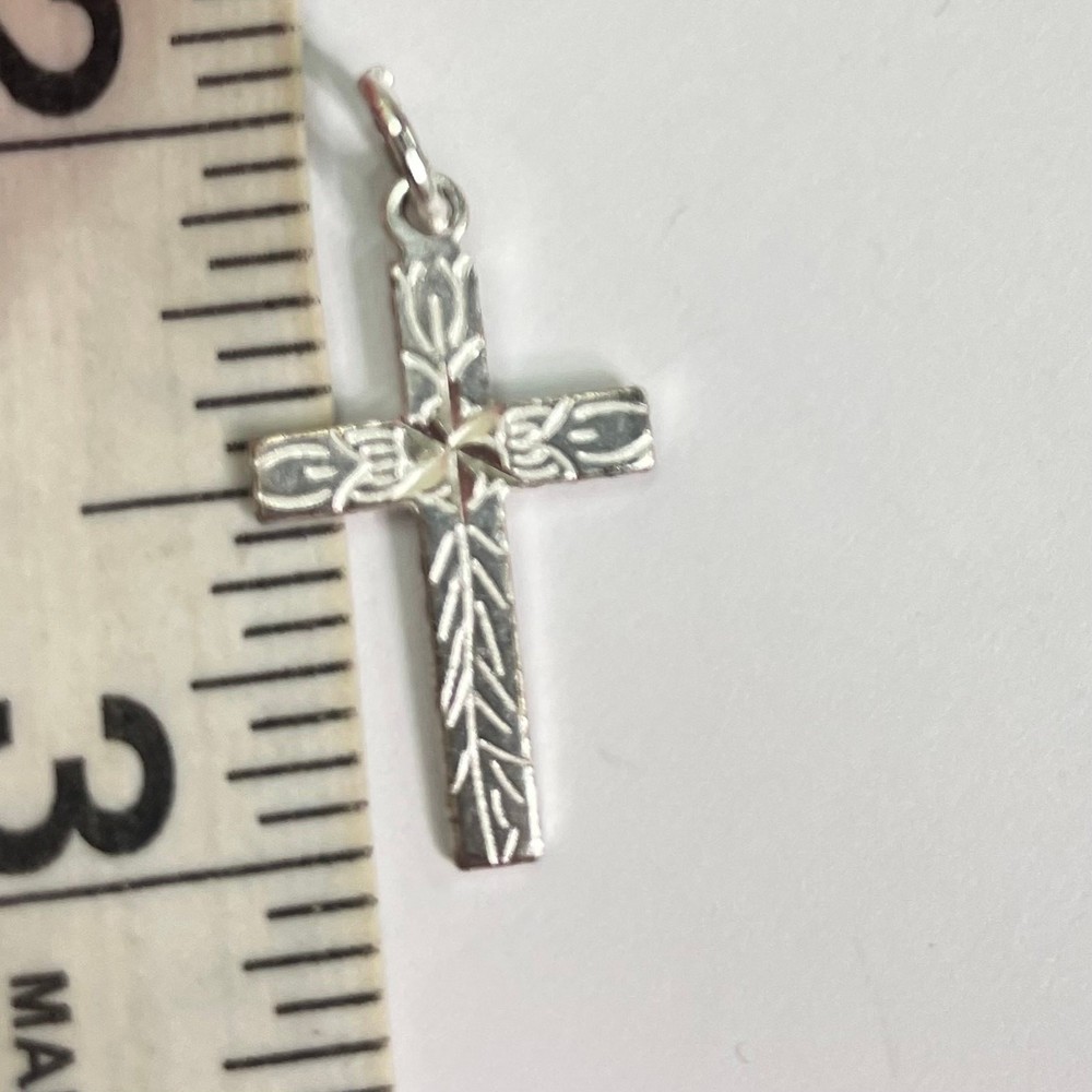 Sterling Silver 925 Etched Detail Small Cross Pendant 1"