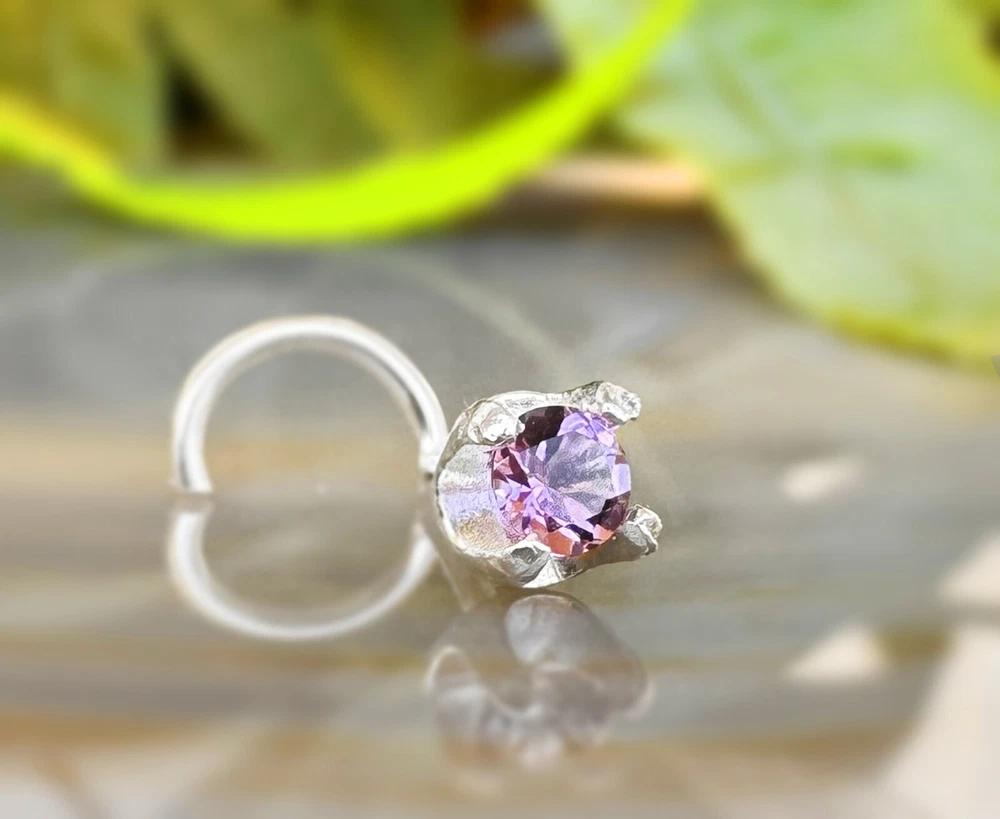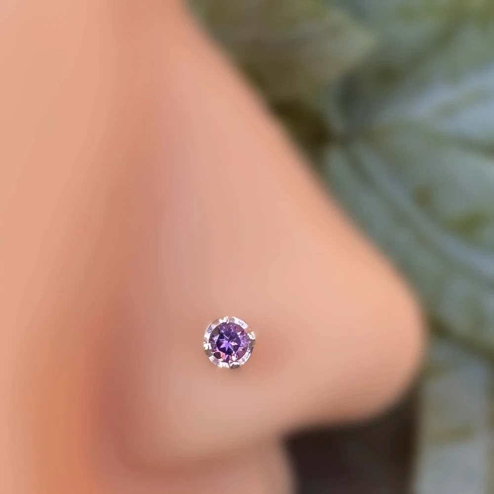This listing is for a single beautiful Nose Stud in Sterling silver and Amathyst Gemstone, Stone - 4 MM Amathyst, Metal - Sterling Silver 925, Super comfortable, ideal for long daily use, Will arrive in a pretty gift box ready to give or keep. Nose stud are handmade in Tbilisi city (Georgia) This listing is for a single nose stud. Gauges - (Post Thickness) 20 Gauge - 0.8mm 18 Gauge - 1.0mm No postage charge for additional items:) Please contact me for any questions. Thank you so much:) Leri