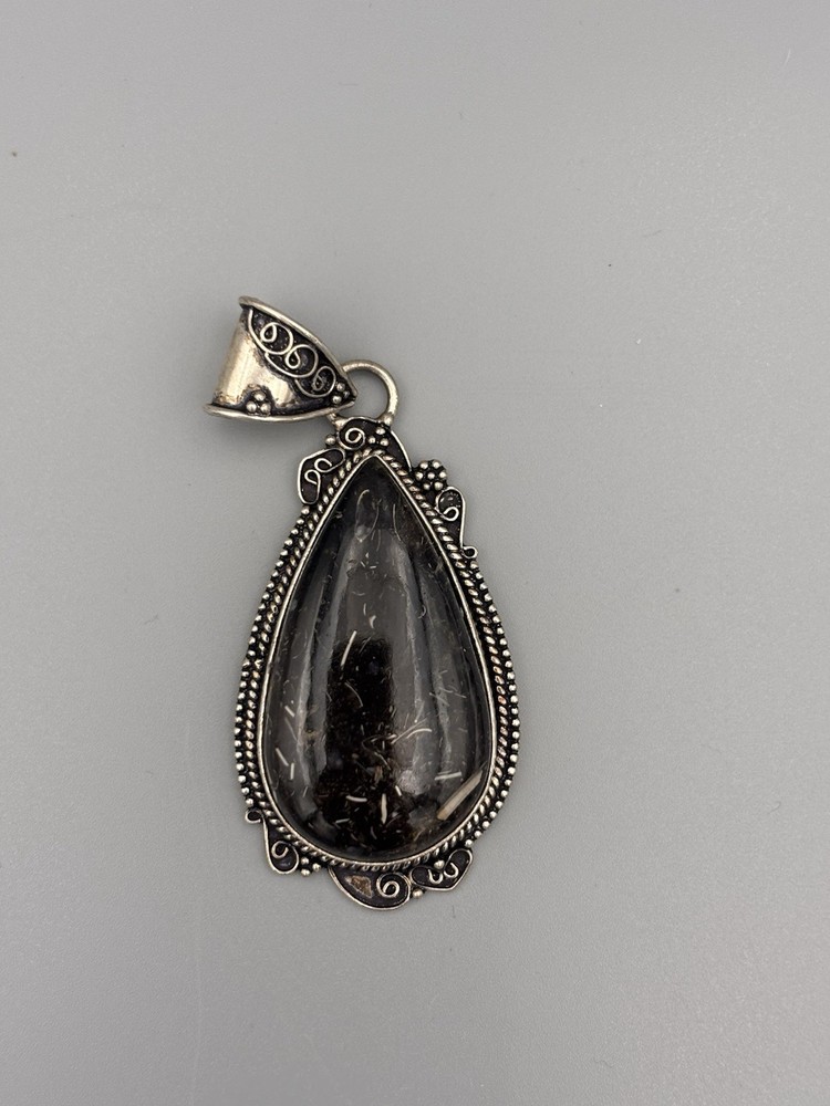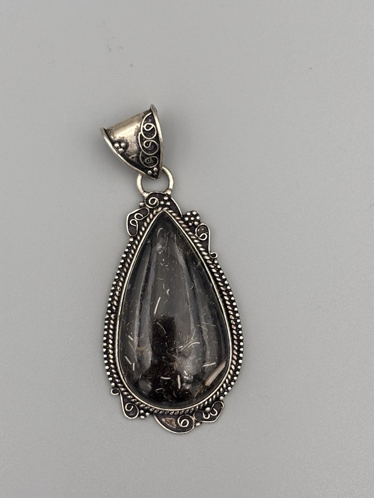 Silver pendant .925 silver w/ black golden rutile stone.45 T. oz.