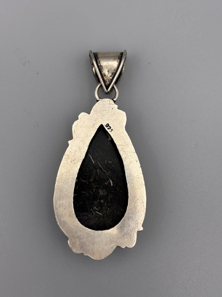 Sterling Silver 925 Teardrop Pendant with Black Stone Bezel Setting