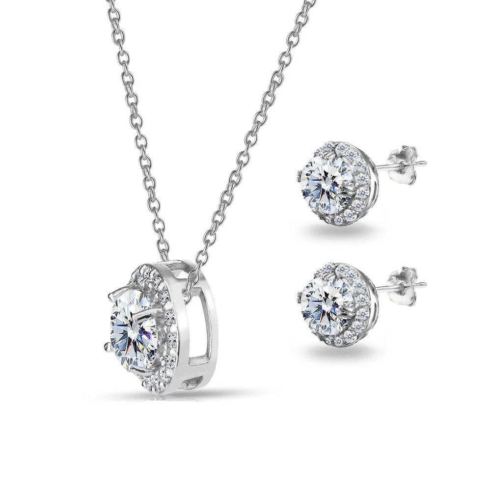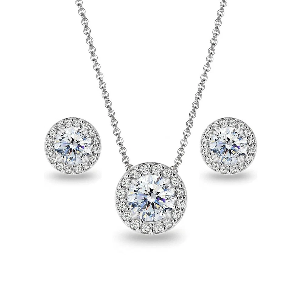 Sterling Silver AAA Cubic Zirconia Round Halo Stud Earrings & Necklace Jewelry Set for Women Product Details Color: Sterling Silver Brand: GemStar USA MPN: 43225-2688 UPC: Does not apply EAN: Does not apply Is Discontinued By Manufacturer : No Department : womens Date First Available : February 23, 2018 Manufacturer : GemStar USA Brand, Seller, or Collection Name: GemStar USA Metal stamp: 925-sterling Metal: Sterling Silver Material: Metal Gem Type: Cubic Zirconia Minimum total gem weight: 4.50 carats Setting: prongs Height: 0.39 inches Width: 0.39 inches Length: 18 inches Chain: Rolo Clasp: Spring Ring Clasp Resizable: No Number of stones: 51 Stone Weight: 4.50 carats Model number: UK_B079ZYWBWC Sterling Silver Round Halo Stud Earrings & Necklace Set Made with AAA ZirconiaWear this stylish stud earrings and necklace set to enhance your daytime and evening attire. This stunning necklace features a round stone made with AAA Zirconia in a beautiful halo design and it measures 10mm in length and width. The earrings feature round stones made with AAA Zirconia in a unique halo design and measure 10mm in length and width. This set is crafted of fine sterling silver and is nickel free. The necklace measures 18 inches in length that secures by a spring-ring clasp and the stud earrings secure by post with friction-backs. This AAA set in fine jewelry is a great addition to your AAA jewelry and jewelry sets collection. It can be purchased as gifts for women.Choose from the Following Metals:Sterling Silver, Yellow Gold Flashed Sterling Silver, Rose Gold Flashed Sterling SilverGemstar USA is a collection of jewelry that adds diversity and design to your wardrobe. It includes Jewelry for Women and Jewelry whether you prefer the glamour look, urban fashion or rural style. Our jewelry is great as gifts or can be worn for holiday parties, Christmas, Valentine’s Day, Mother’s Day, Thanksgiving, Hanukah, Prom, Birthdays, Anniversaries, Graduation or any private special occasion.Bracelets: Tennis Bracelets, Link Bracelets, Line Bracelets, Bangle Bracelets, AnkletsEarrings: Hoop Earrings, Stud Earrings, Dangle Earrings, Drop EarringsNecklaces: Pendant Necklaces, Chain Necklaces, Choker NecklacesRings: Engagement Rings, Wedding Bands, Stackable Rings, Fashion Rings, Statement Rings, Toe RingsClick on our Storefront for more stylish and newest jewelry!