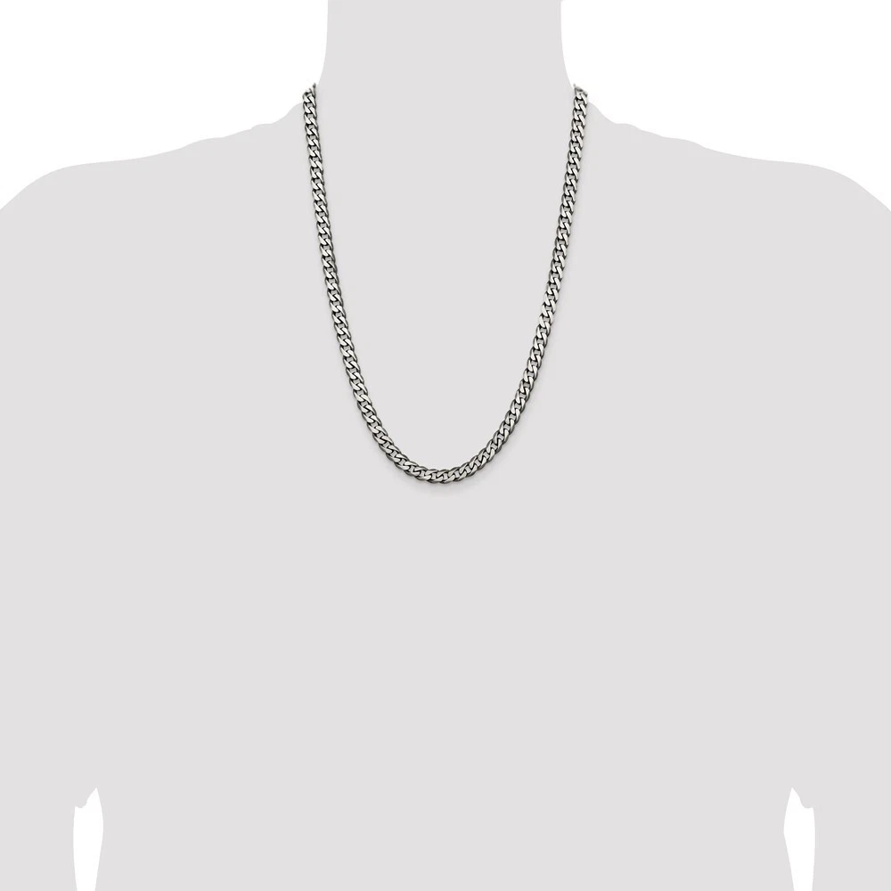Material: Primary - Purity:925|Finish:Antiqued|Length of Item:24 in|Chain Length:24 in|Chain Type:Curb|Chain Width:7 mm|Clasp /Connector:Lobster|Clasp Thickness (Female end):2.8 mm|Clasp Thickness (Male end):3.1 mm|Clasp Width (Female end):6.3 mm|Clasp Width (Male end):5.2 mm|Feature:Solid|Manufacturing Process:Casted|Material: Primary:Sterling Silver|Width of Item:7 mm|Product Type:Jewelry|Jewelry Type:Necklaces|Sold By Unit:Each|Necklace Type:Chain Styles|Gender:Unisex|Material: Primary - Color:White All weights and measurements are approximate and may vary slightly from the listed information. Welcome to diamond_6720 Payments We accept all Ebay approved payment. Please sent the payment to us within 8 days after the auction has ended, or you will have unpaid case auto open by eBay. Shipping Policy We will ship all items within 1 business days of purchase during the work week (M-F) excluding holidays. If you order on Friday, your order will be shipped the following business day. Tracking will be provided when it becomes available. We will only ship to a PayPal Verified Address. Please make sure your address is current and correct. If the information does not match, your order may be canceled. Buyers are responsible for all customs, duties and taxes for your respective countries. Delivery times for International Shipping will vary. California Buyers Pay 9.0% Tax on all orders. case auto open by eBay. Return Policy & Exchange Returns or Exchange are accepted. Buyer must contact us within 30 days after the item is received. Item must be returned in unworn and resalable condition. We will only issue a refund for the purchase price, excluding any shipping fees. If we are at fault, we will provide a full refund. Buyer is responsible for all return shipping costs. BUYERS FEEDBACK If you have any concerns regarding your purchase, please contact us via eBay Message, we assure you that a satisfactory resolution will be reached. Your feedback is very important to us Do remember to give us 5 star rating(*****) if you are satisfied with our product & service .