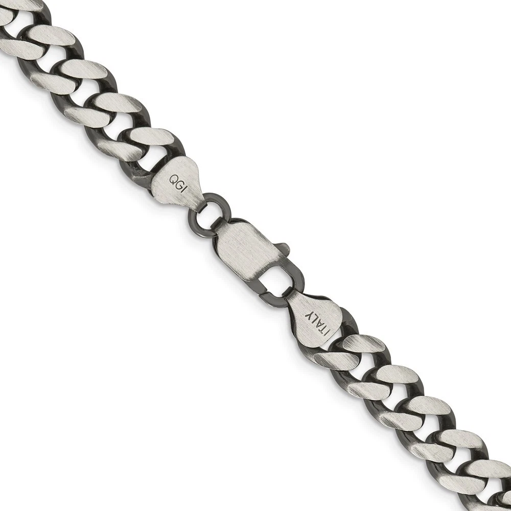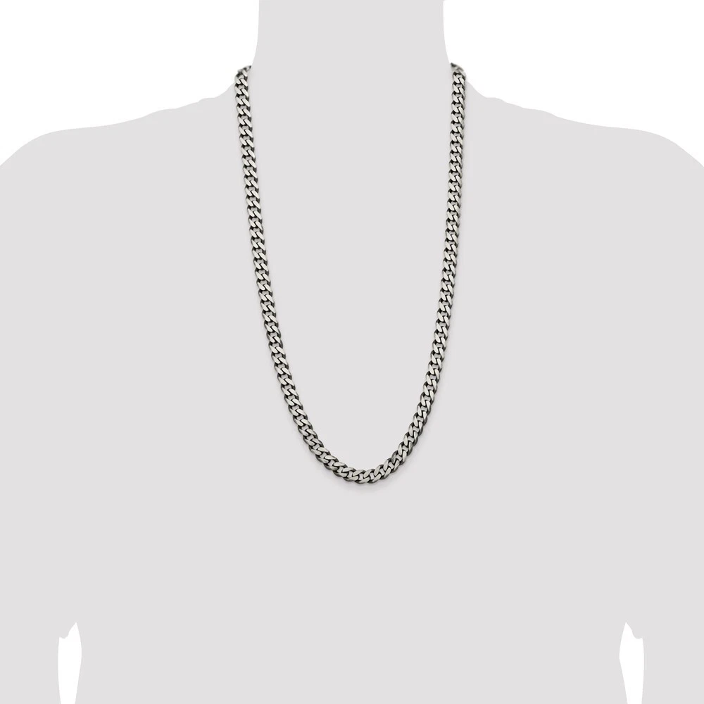 Sterling Silver Antiqued 9.3mm Curb Chain Necklace 28" for Women 82.86gm