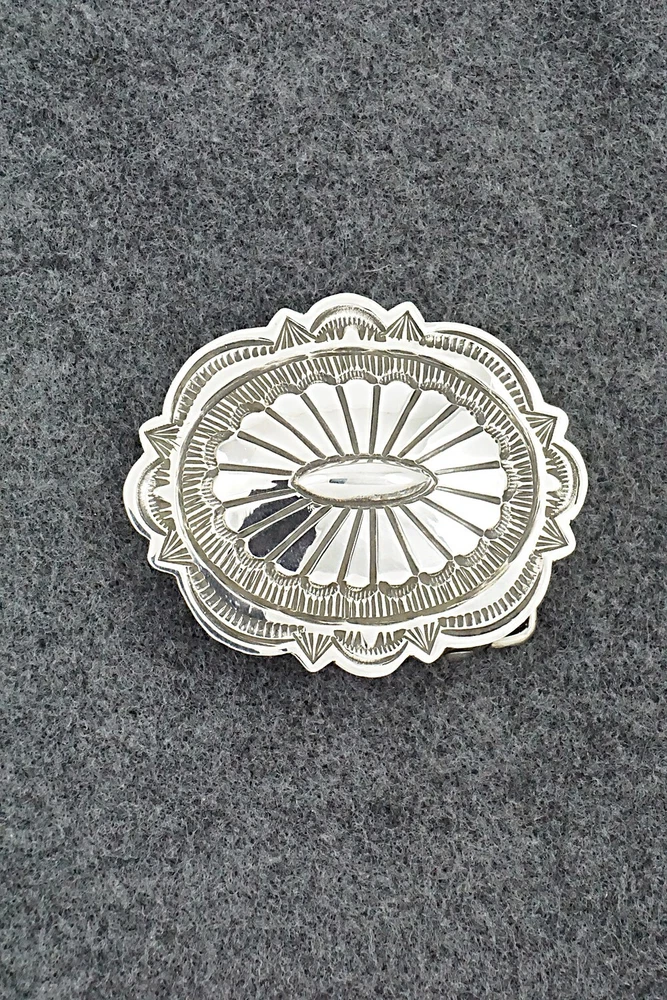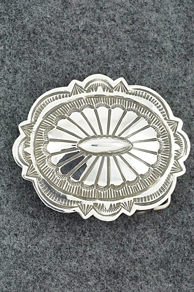 This sterling silver belt buckle was made by Navajo silversmith Arnold Blackgoat. The back of the buckle is signed BLKGT and stamped sterling. Length: 1 7/8" Width: 2 1/4" Free shipping on all orders! We ship with USPS and always include tracking. All orders ship within a day of payment. Returns are accepted up to 30 days after you receive your order. Just send us a message. Our shop offers cash back or store credit. The item must be returned in new condition.