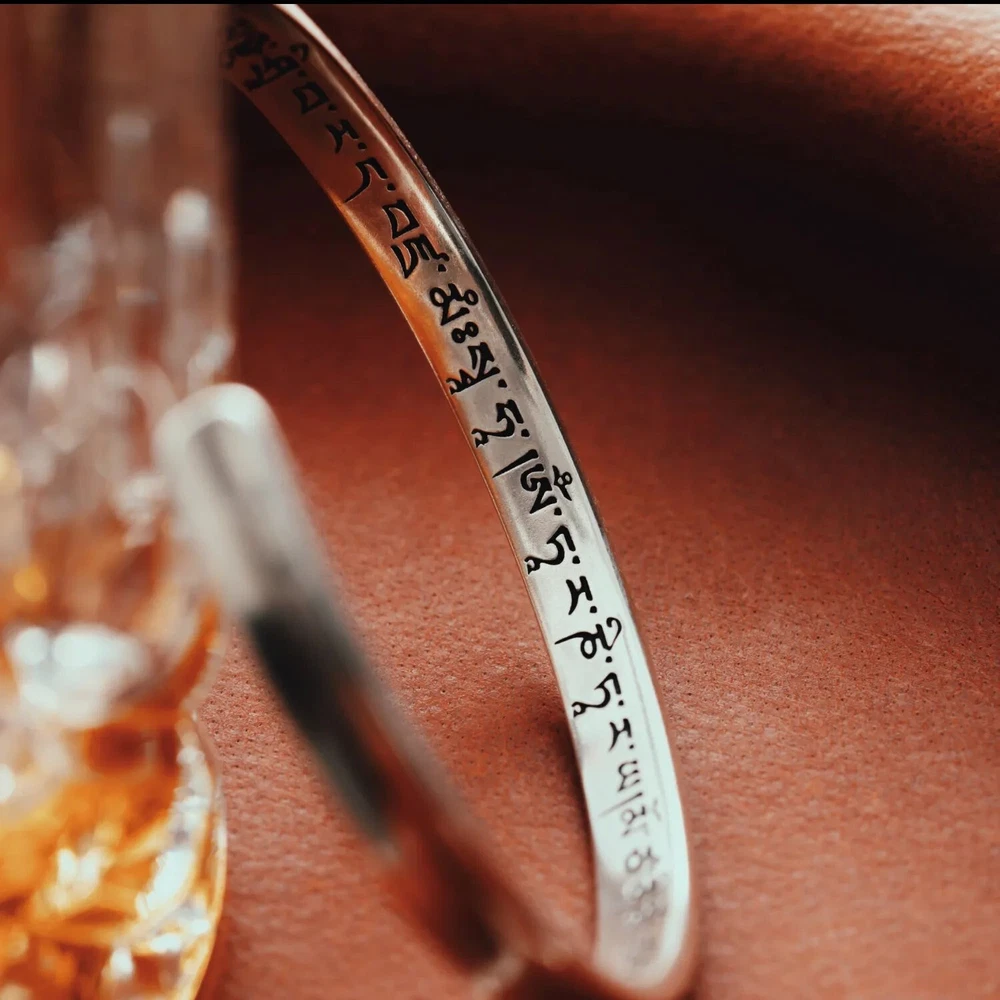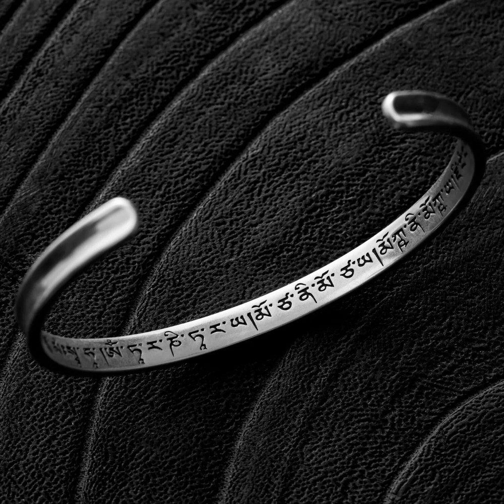 About this item *Buddhist Mantra Bracelet: Inspired by the Liberation Mantra, this bracelet symbolizes breaking free from life’s constraints. Its powerful inscription is traditionally recited to dispel troubles and navigate life’s challenges, serving as a steadfast companion through hardship. *Ingenious Design: The mantra text is delicately hand-engraved and filled with durable enamel for lasting vibrancy. With this bracelet, the mantra becomes a daily source of calm, guiding the wearer toward new beginnings and inner peace. *Material & Size: Expertly crafted from S925 silver, this Buddhist Mantra bracelet features an open-ended design for easy wear. Inner Diameter: 2.44" / 62mm; Inner Circumference: 7" / 180mm; Thickness: 0.09" / 2.4mm; Weight: Approximately 0.30oz / 8.5g. *Classic & Elegant: Its narrow form exudes subtle elegance, while the symbolic mantra provides ongoing strength and resilience. The minimalist, pristine design ensures long-term comfort and embodies a philosophy of simplicity, encouraging a release from worldly burdens. *Perfect Gift: This silver bracelet stands out as both a personal talisman and a thoughtful gift. Ideal for solo wear or layering, this piece blends spirituality with versatility, making it a meaningful choice for yourself or for loved ones seeking tranquility and inspiration.