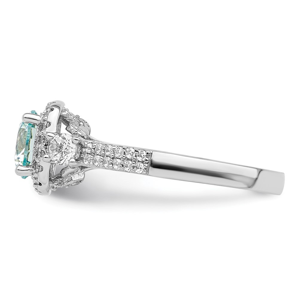 Sterling Silver Clear and Teal Cubic Zirconia Style Ring Size 7