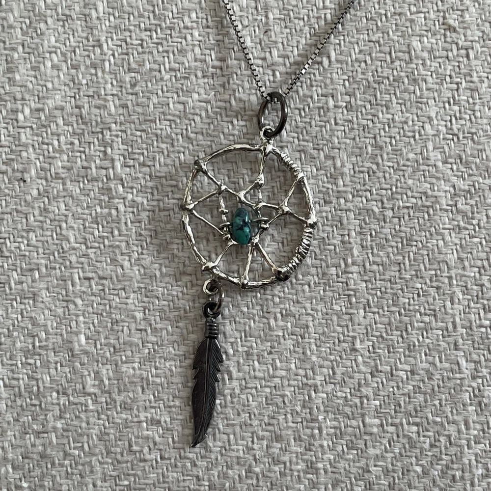 Sterling Silver Chain Dream Catcher Feather Turquoise pendant necklace Boho. Condition is Pre-owned. Shipped with USPS Ground Advantage.