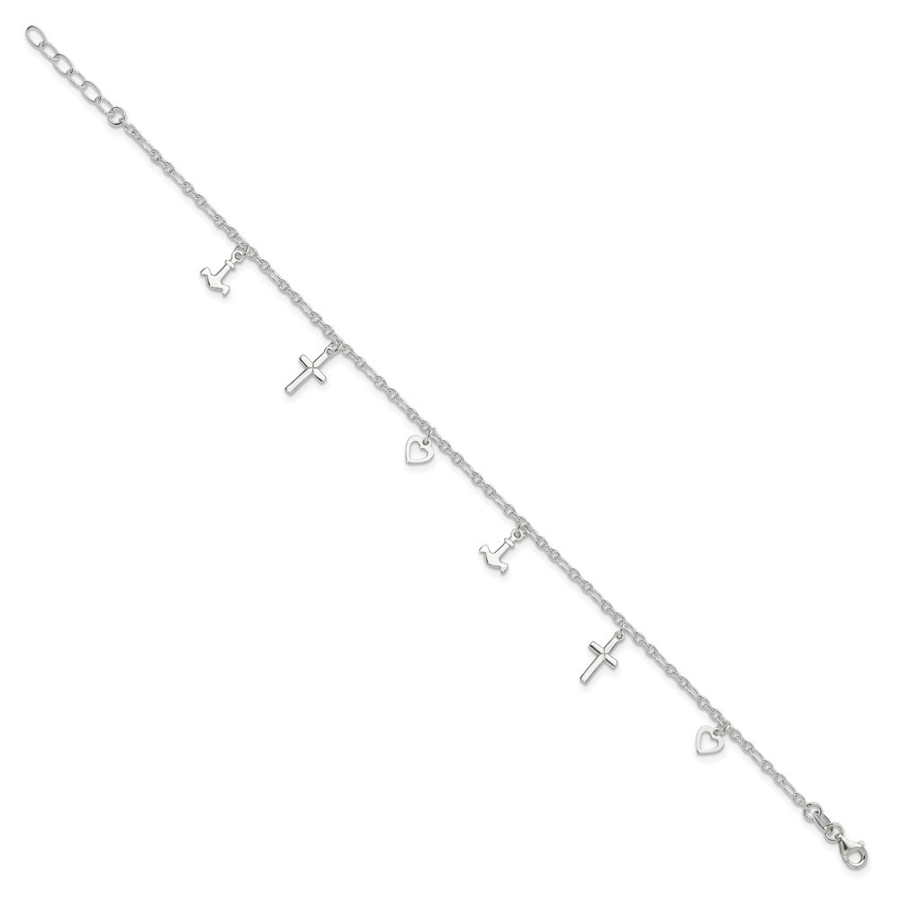 925 Sterling Silver Polished Ocean Themed Anklet 10 Inch with 1 Inch Extender 4.09 Grams