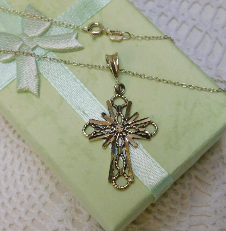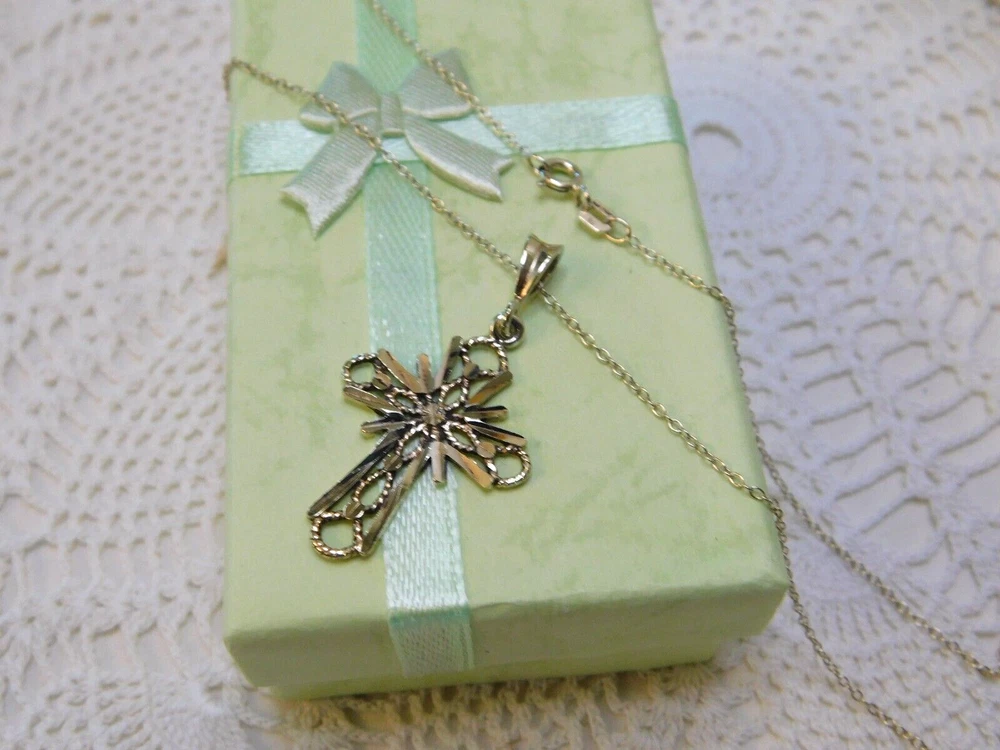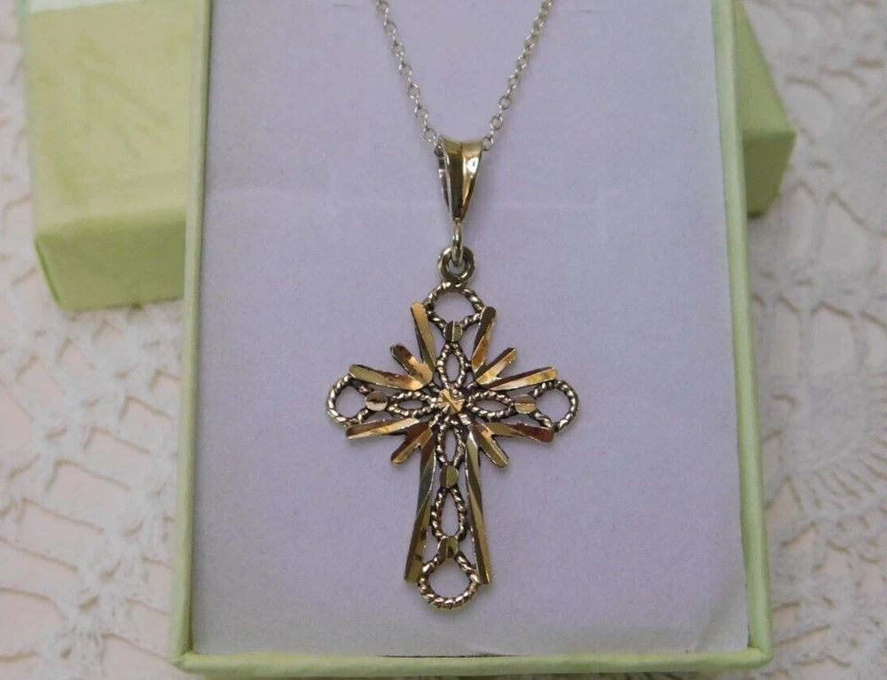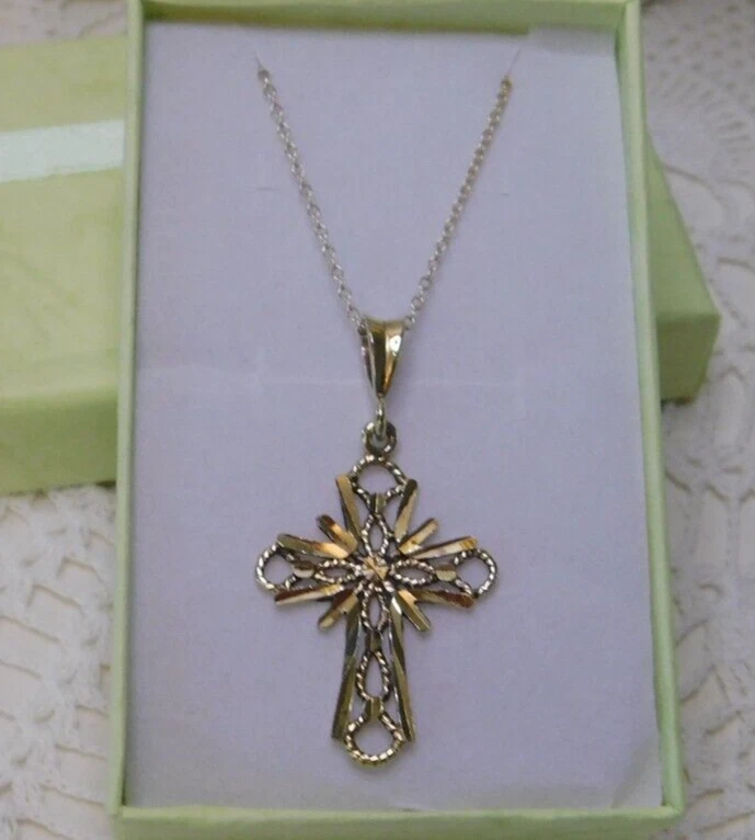 Vintage Gold over Sterling Silver Cross Pendant SIGNED: DANECRAFT ITALY 925 NECKLACE IS 18" AROUND - CROSS IS 1 1/2" LONG BY 3/4" ACROSS IN GIFT BOX, PERFECT CONDITION --------------------------------------- I WILL COMBINE SHIPPING UP UNTIL 6 DAYS, ALL HAVE TO BE PAID TOGETHER TO GET SHIPPING DISCOUNT. THE POSTAGE COST WILL DEPEND ON WEIGHT. THE MORE YOU WIN THE MUCH LESS SHIPPING WILL BE.