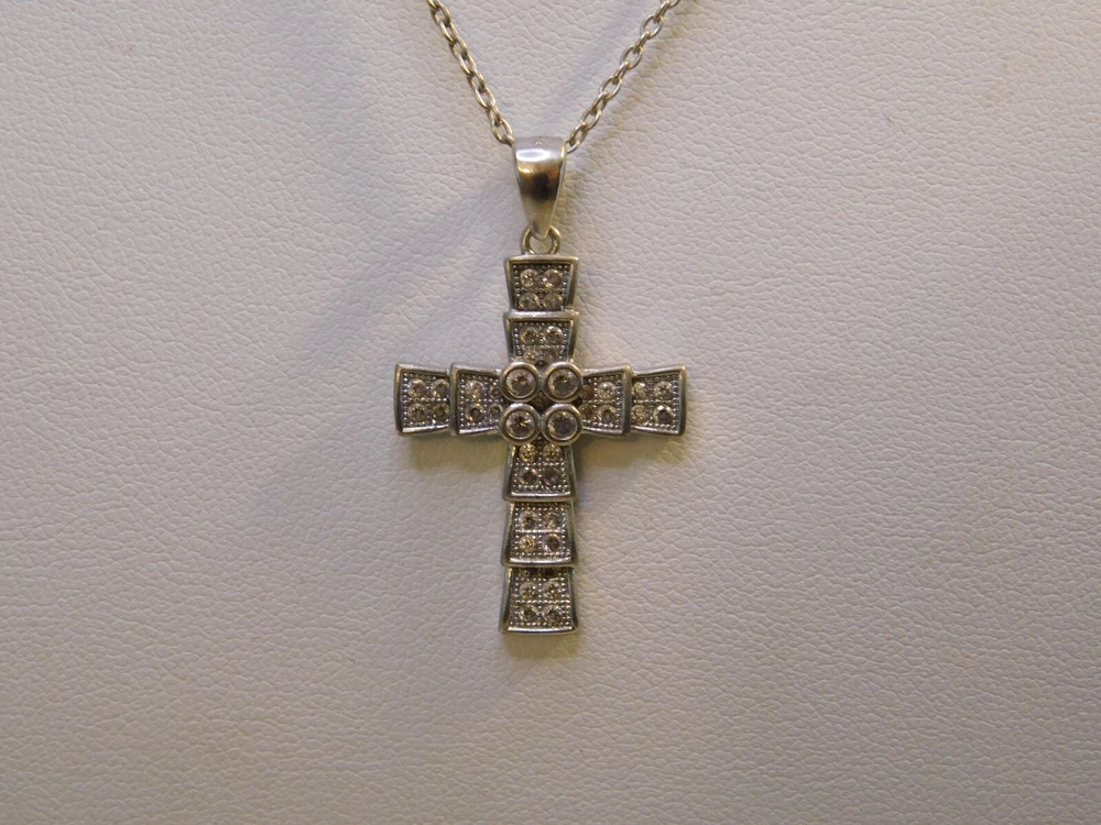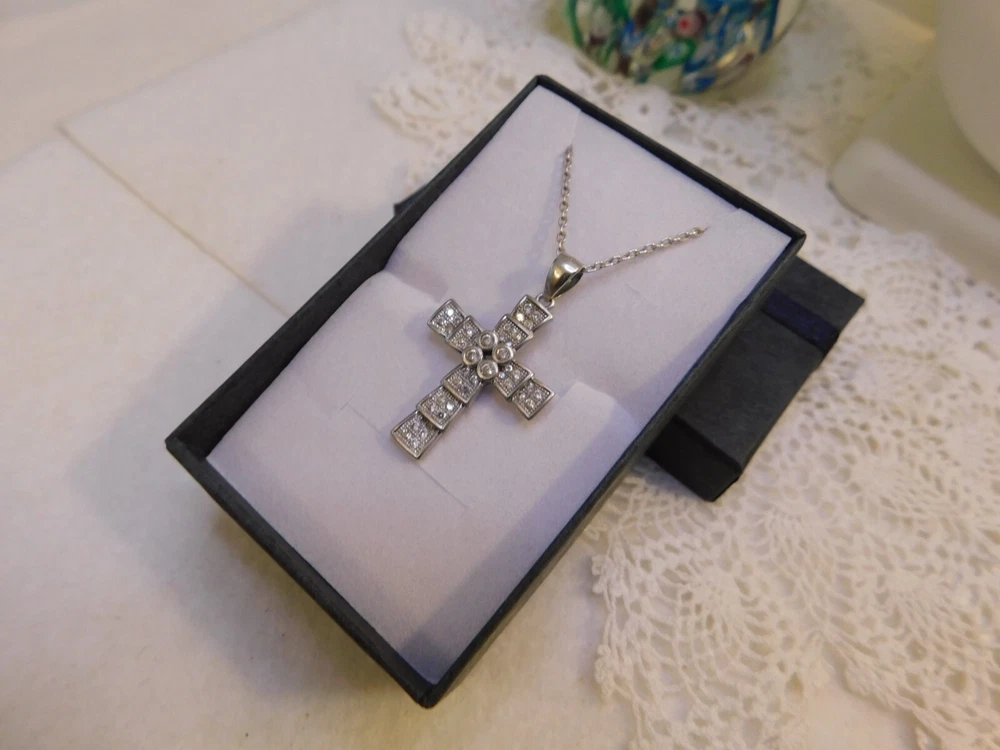 Sterling Silver Crystal Cross Pendant Necklace SIGNED: S 925 NECKLACE IS 16" AROUND - CROSS IS 1 1/4" LONG BY 3/4" ACROSS SUPER NICE, WONDERFUL CONDITION --------------------------------------- I WILL COMBINE SHIPPING UP UNTIL 6 DAYS, ALL HAVE TO BE PAID TOGETHER TO GET SHIPPING DISCOUNT. THE POSTAGE COST WILL DEPEND ON WEIGHT. THE MORE YOU WIN THE MUCH LESS SHIPPING WILL BE.