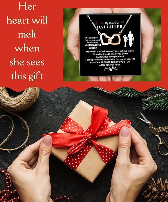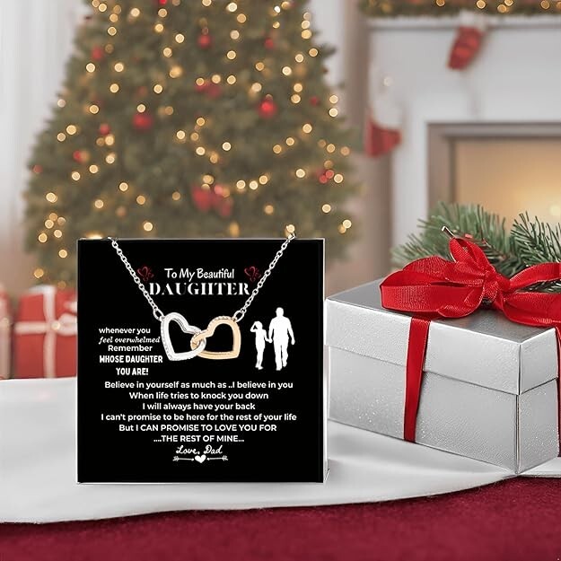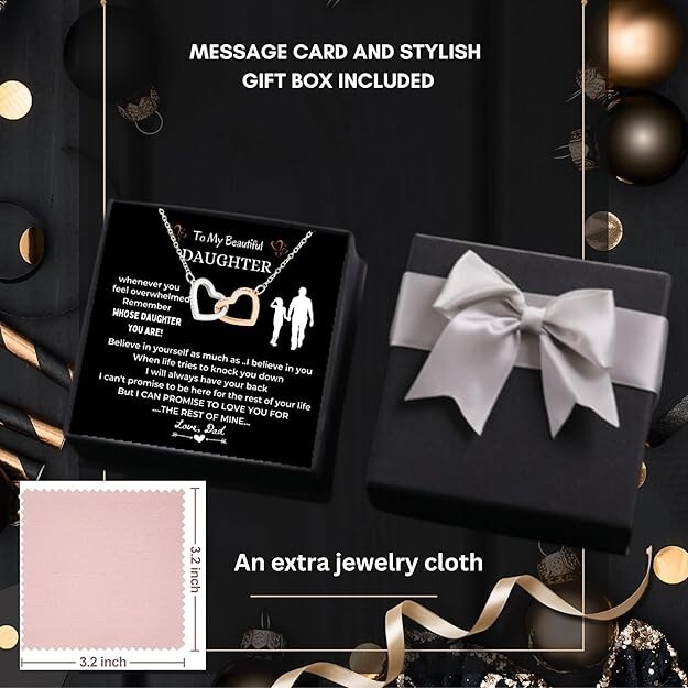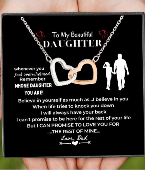 DAUGHTER NECKLACE GIFT FROM DAD: Her heart will melt when she unwrapped this Gift from Dad, a thoughtful Christmas, Birthday or Valentine Gift for your Daughter Made of Sterling Silver, one heart pendant plated with rose gold, as a symbol of never-ending love, It is the perfect gift for her to show how much you care and that she is special in your life! READY TO GIFT: included a nice gift box and a beautiful message card, hassle-free The cable chain measures 18'' to 22'' durable, for your choice wear short or long Please note any copies or unauthorized reproductions of this art work is strictly prohibited under United States copyright law Unique Daughter Gifts: valentine gift daughter, mother's day gifts for daughter, graduation gifts, Christmas gifts