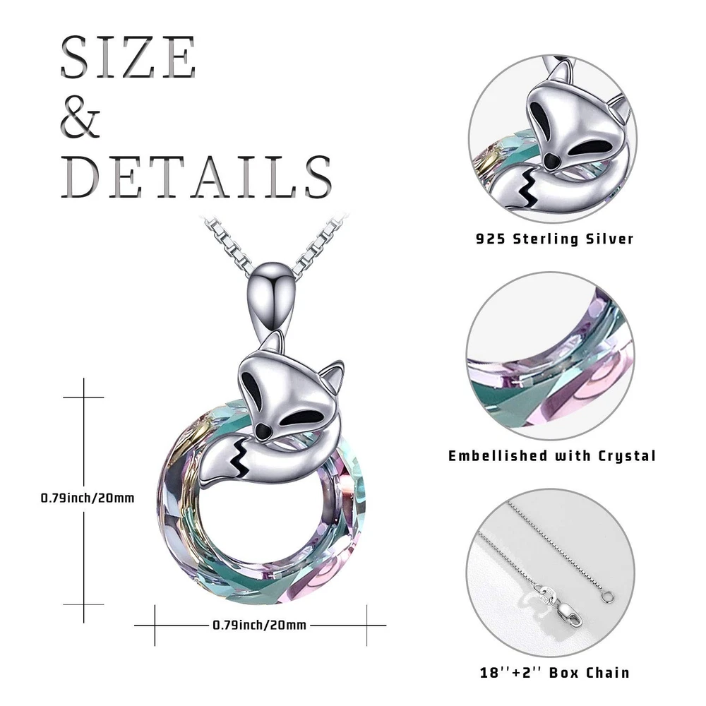 Spoil Your Special Lady With The Greatest Gift ! With this cute & elegant fox heart pendant necklace that sits close to your heart, feeling stunning and unique with any outfit. Gift this beautiful fox necklace to Your Mother / Wife / Girlfriend / Daughters/ Sister / Friends to Shows That You Will be Always With Them Together. Package Included: 1x Fox Crystal Necklace 1x Free Jewelry Gift Box 1x 925 Silver Chain 1x Free Jewelry Polishing Cloth Jewelry Maintenance for You: 1. Keep away from sweat, bleach and any other chemicals. 2. Don't wear it while take a shower or go to bed. 3. To keep your sterling silver jewelry from tarnishing when not being worn,store it wrapped in a soft cloth and placed in a zip lock plastic bag. 4. Cleaning and wearing silver jewellery regularly will help maintain its shine. 🦊Unique Design -- Fox as a symbol of Lucky & Joys. Reminds you to live in the moment and enjoy the life you earn. Whenever you wear it, there comes with joys and vigor.Treat yourself or someone special with this stunning necklace. 💕Material -- Made of Real 925 sterling silver, glittering crystal makes it truly eye-catching. Exquisite polish technique made every details smooth and bright. Nickel-free, lead-free and hypoallergenic, comfortable to wear, be safe for skin. 💕Elegant Pendant -- Pendant size is 14mm/0.55 inch. A strong and durable 18" box chain with 2" extender, adjustable chain for all of you. This cute fox crystal pendant can bring joy and a smile to anyone who see it. 💕Fox Gifts for Her -- It comes in an elegant jewelry gift box, great for the women that love fox and animal. Gift it to your girlfriend, wife, mother, sister, daughter or friends on Mother's Day, Birthday, Graduation, Anniversary, Christmas or any special occasions. 💕No-worry Purchase -- We will provide prime quality product with friendly customer service, if you have any problems please don't hesitate to contact us, we will try our best to help you.