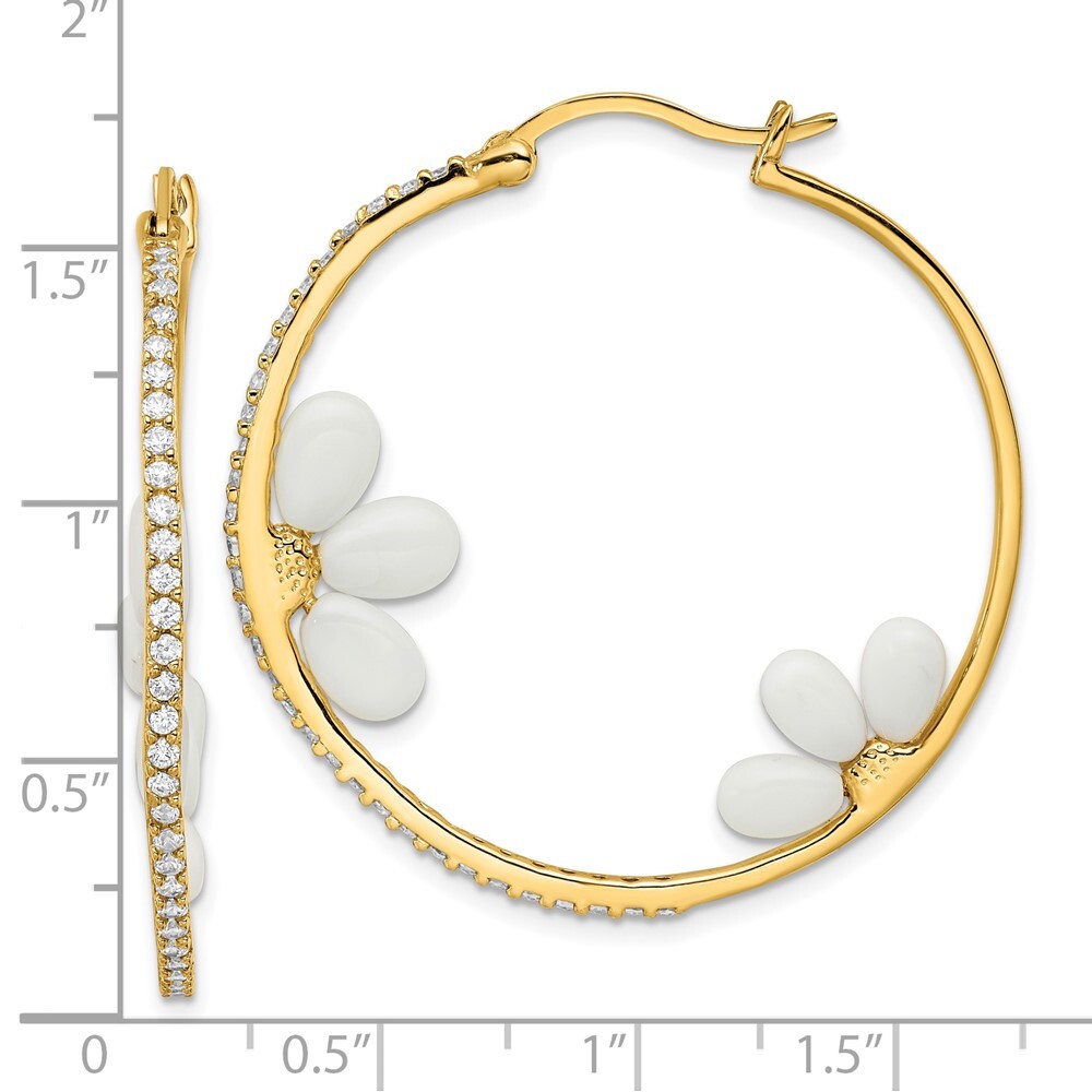 Material: Primary - Purity:925|Finish:Polished|Stone Type_1:Cubic Zirconia (CZ)|Stone Type_2:Agate|Stone Color_1:White|Stone Color_2:White|Length of Item:40.5 mm|Material: Accent Color 1:Gold Tone|Material: Primary:Sterling Silver|Completeness:Complete (all stones included)|Stone Treatment_1:Synthetic|Thickness:3.05 mm|Item Weight U/M:gm|Width of Item:38.7 mm|Product Type:Jewelry|Jewelry Type:Earrings|Sold By Unit:Pair|Gender:Women's|Material: Primary - Color:White|Earring Closure:Wire & Clutch|Earring Type:Hoop|Stone Creation Method_1:Synthetic All weights and measurements are approximate and may vary slightly from the listed information. Welcome to diamond_6720 Payments We accept all Ebay approved payment. Please sent the payment to us within 8 days after the auction has ended, or you will have unpaid case auto open by eBay. Shipping Policy We will ship all items within 1 business days of purchase during the work week (M-F) excluding holidays. If you order on Friday, your order will be shipped the following business day. Tracking will be provided when it becomes available. We will only ship to a PayPal Verified Address. Please make sure your address is current and correct. If the information does not match, your order may be canceled. Buyers are responsible for all customs, duties and taxes for your respective countries. Delivery times for International Shipping will vary. California Buyers Pay 9.0% Tax on all orders. case auto open by eBay. Return Policy & Exchange Returns or Exchange are accepted. Buyer must contact us within 30 days after the item is received. Item must be returned in unworn and resalable condition. We will only issue a refund for the purchase price, excluding any shipping fees. If we are at fault, we will provide a full refund. Buyer is responsible for all return shipping costs. BUYERS FEEDBACK If you have any concerns regarding your purchase, please contact us via eBay Message, we assure you that a satisfactory resolution will be reached. Your feedback is very important to us Do remember to give us 5 star rating(*****) if you are satisfied with our product & service .