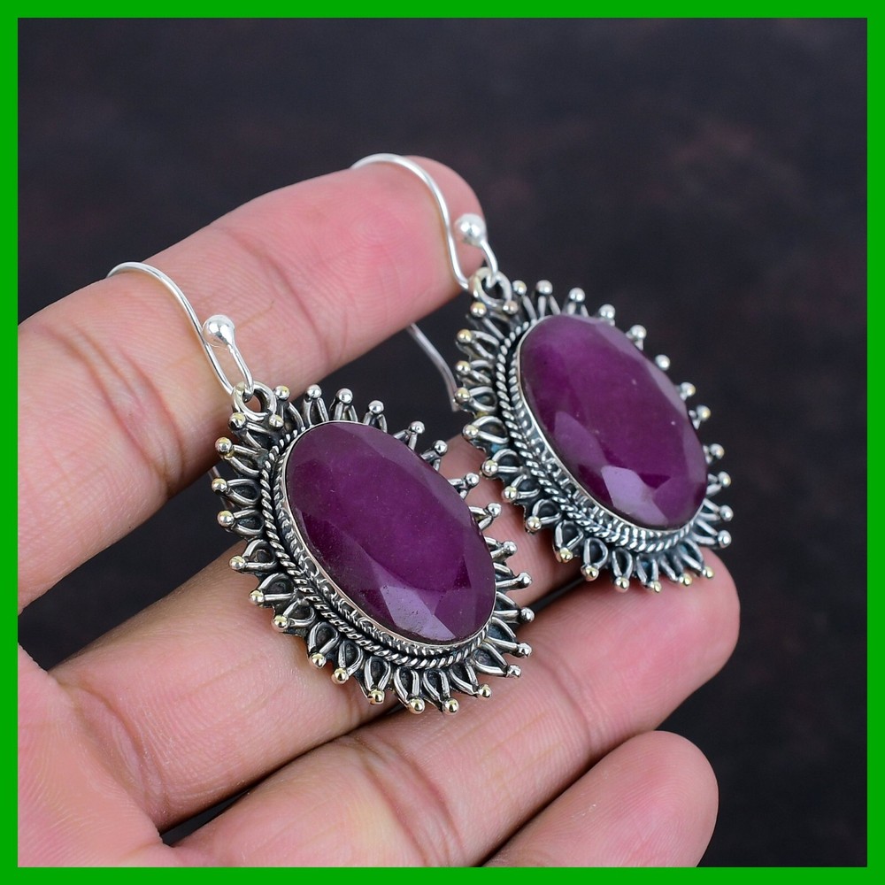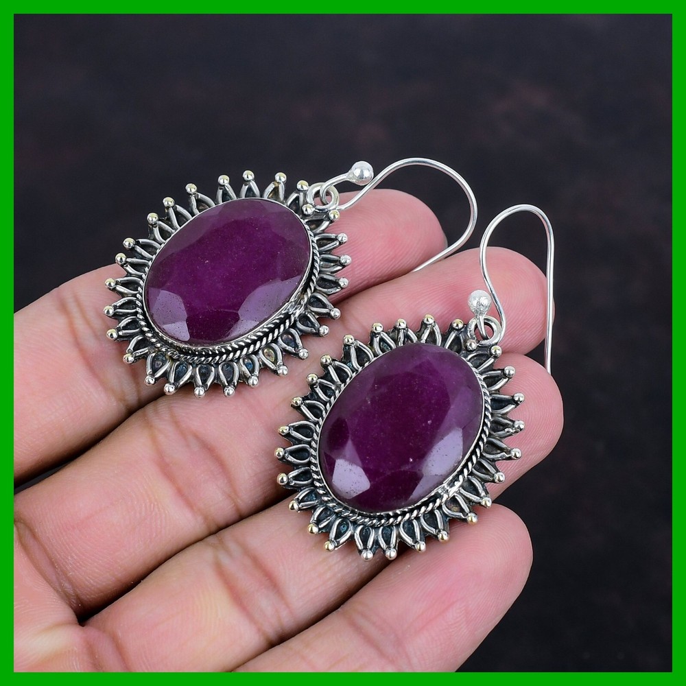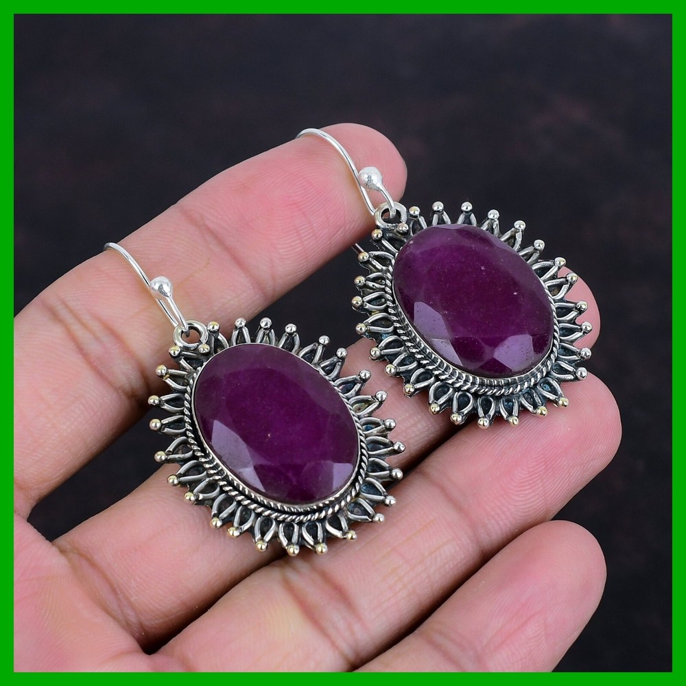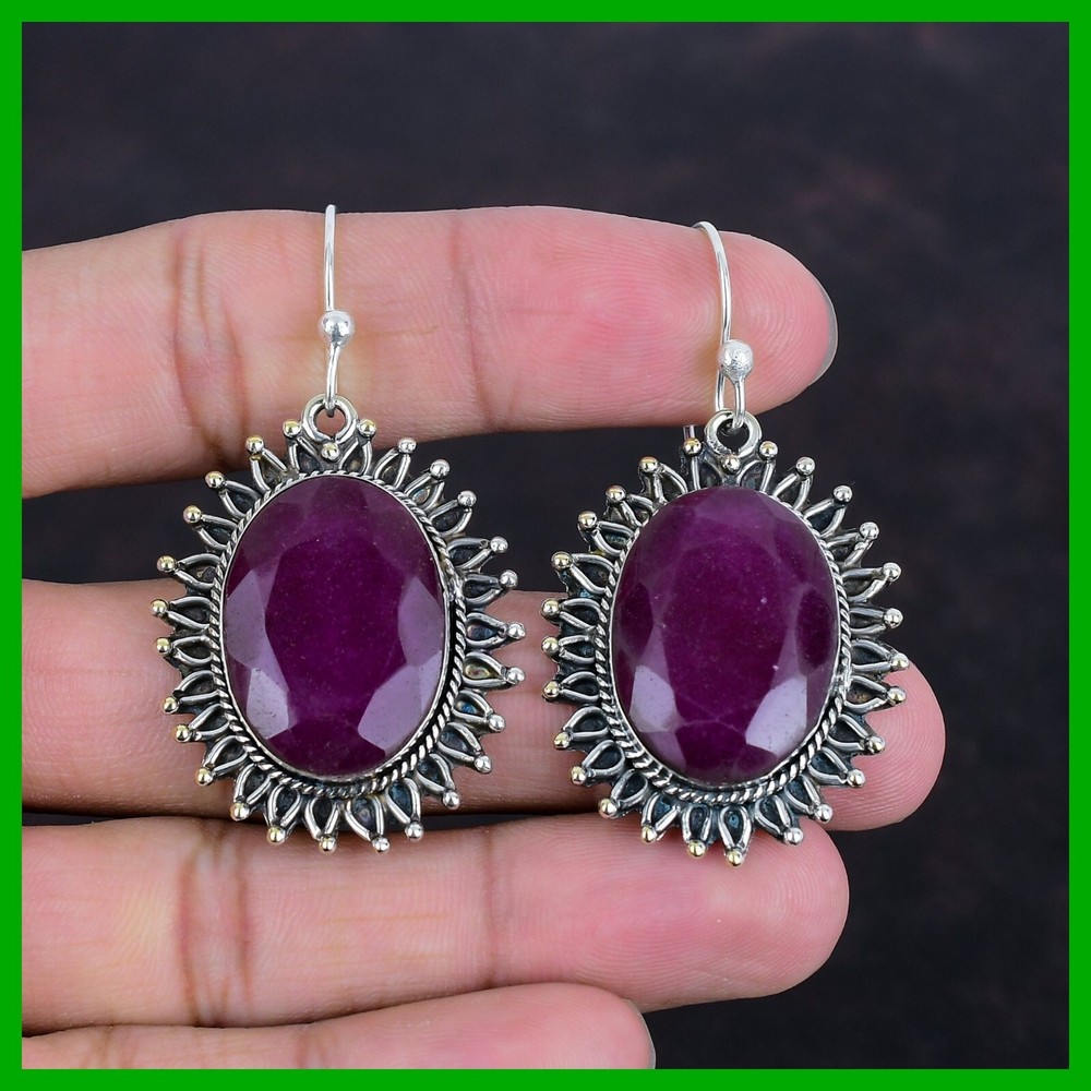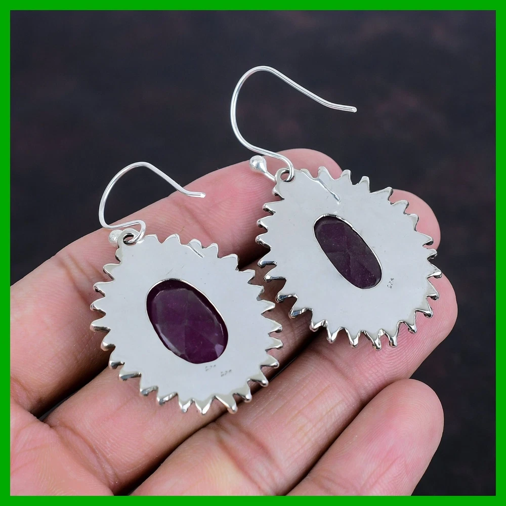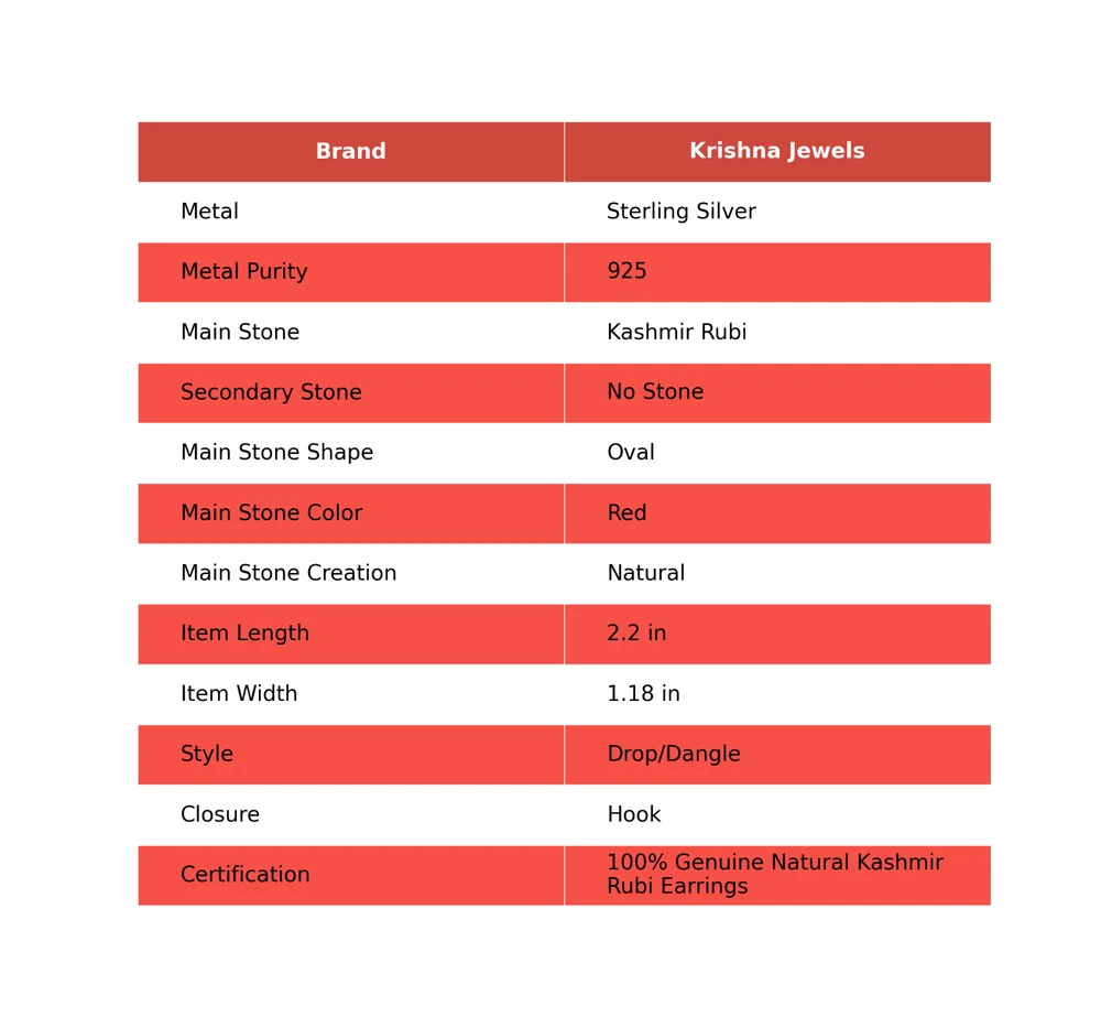 Note: Natural gemstones can vary slightly in design and color due to their unique formation. Welcome to KrishnaJewels123 Explore Our Handmade Sterling Silver Jewelry Collection Product Details: SKU: KKE-1464 Gemstone: Kashmir Rubi Stone Shape: Oval Metal Purity: 925 Sterling Silver Length: 56 Millimeters $ Width: 30 Millimeters $ Sterling silver has long been cherished for its sophisticated charm and enduring quality. Valued for its elegance and versatility, sterling silver is a staple in jewelry design, offering a perfect balance of beauty and durability. Our sterling silver jewelry combines timeless appeal with modern craftsmanship. Known for its hypoallergenic qualities and resistance to tarnish, sterling silver enhances the natural brilliance of gemstones, creating a stunning, refined look. Ideal For: Mother’s Day Father’s Day Promises Valentine’s Day Halloween Celebrations Christmas Gifts New Year Festivities Gifts for Mom Gifts for Her Need more details or personalized advice? Don’t hesitate to reach out! We’re here to assist you promptly. Each piece at KrishnaJewels123 is handcrafted with care and passion. As experts in creating exquisite sterling silver jewelry, we take pride in our meticulous craftsmanship. Our collection features a diverse range of designs, each enhanced by genuine gemstones and created by our skilled artisans. Thank you for visiting KrishnaJewels123. We hope you find joy in exploring our collection and enjoy your shopping experience with us!