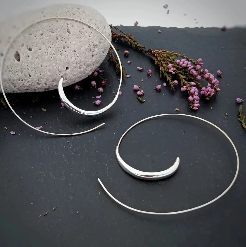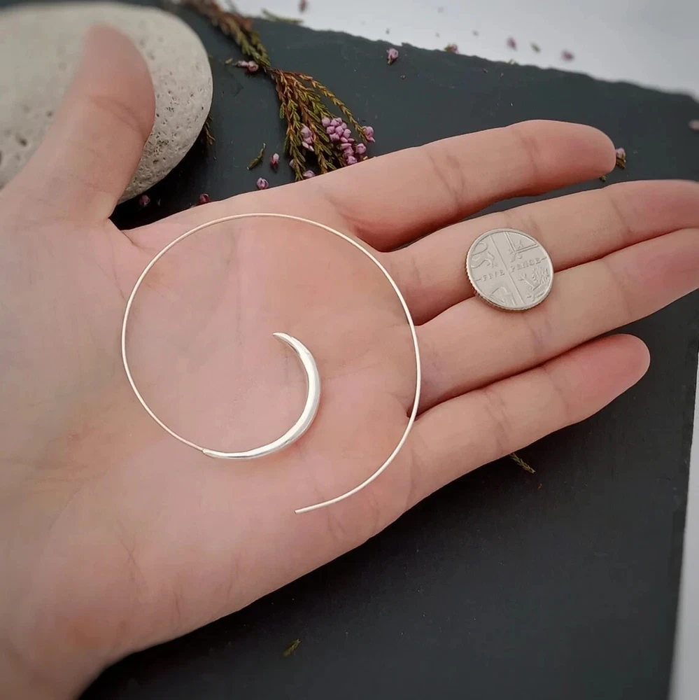 Large liquid drop round spiral earrings in sterling silver. Nickel FREE Large dangling spiral threaders in high polished silver with a weighted liquid drop at the end which lends itself the the elegant ondulating motion when worn. 1mm thick round silver wire threaders with a simple yet sleek design. Very popular for Tribal style Boho jewellery lovers. Flexible wire can be worn with ease and look stunning on. Buy Now! Dimensions: Spiral Diameter: 5.5 cm Weight: 6.7 grams per pair SOLD ONLY IN PAIRS! Delivery Information All items dispatched from the UK. Item will be carefully packaged in eco-packaging to safeguard it during delivery and with our branded satin pouch ready as a gift. Standard Tracked 48 Shipping with Royal Mail or Yodel included FREE . Tracking number details will be sent after dispatch (which is usually within 1 working day of purchase. Weekends/festivities excluded). Faster shipping options also available for the UK. Worldwide shipping available with Royal Mail Tracked & Signed. Returns accepted within 14 days of receipt. At customers’ expense.