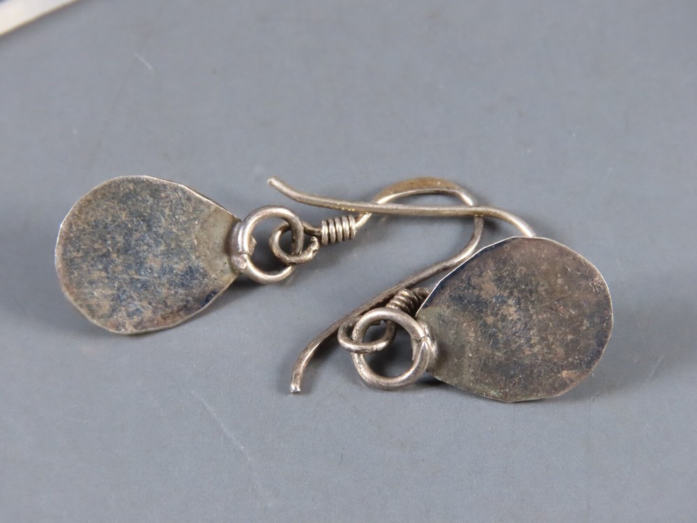 VTG Southwest Sterling Silver Hand-Chased Bear Dangle Earrings 5.5g