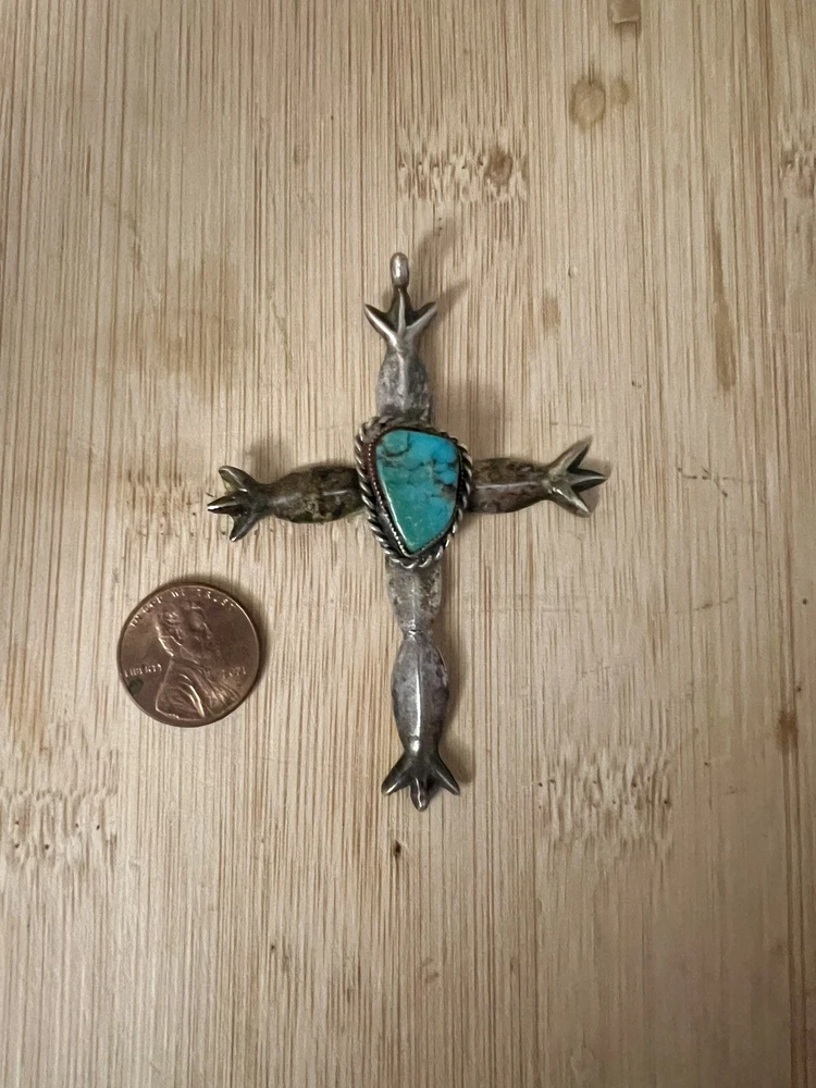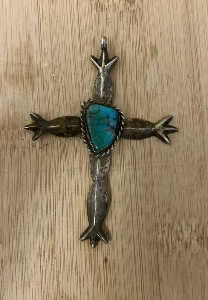 This beautiful pendant is a must-have for any jewelry collection. The intricate design features a stunning blue turquoise stone, set in sterling silver. The pendant shape is a cross, making it a perfect accessory for any religious occasion. The blue color of the stone is eye-catching and complements the silver perfectly. The brand is Sterling, ensuring that the pendant is of high quality. The style is perfect for a fashion statement, and it can be worn with any outfit.