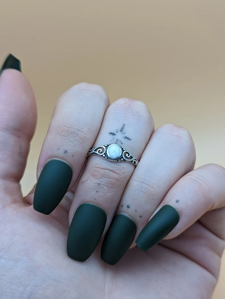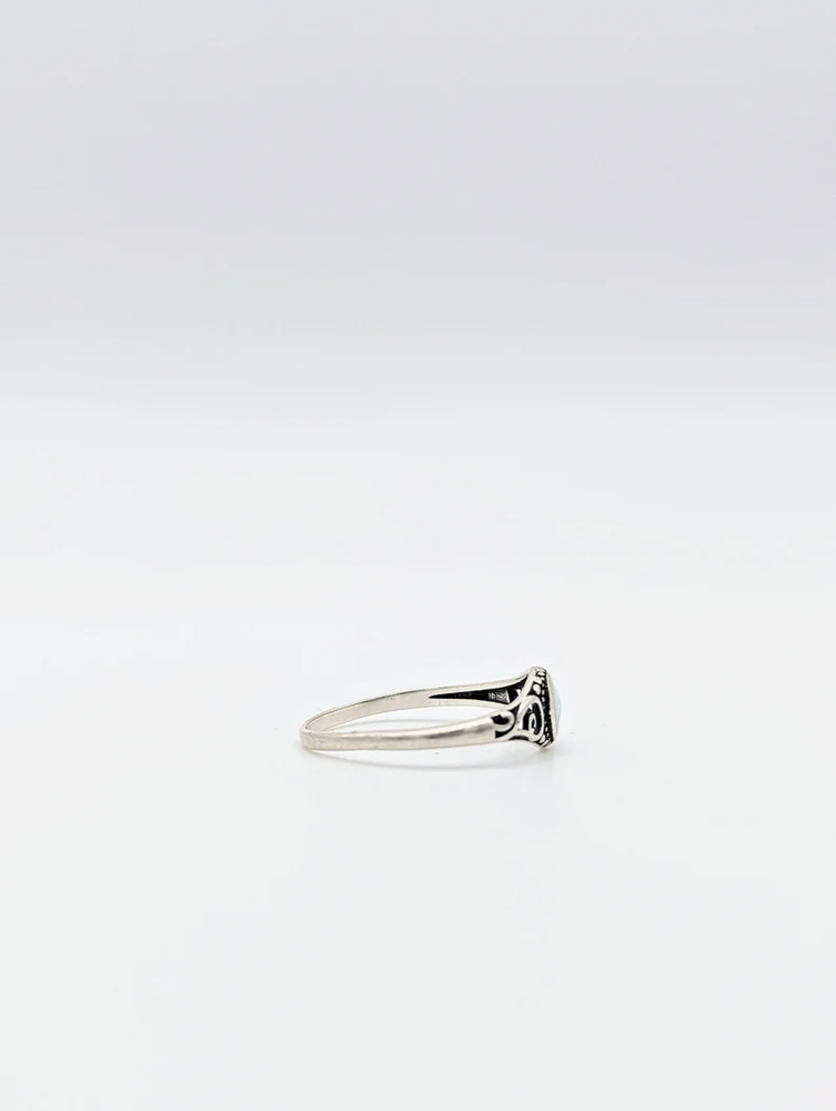 Introducing our Swirls Opal Sterling Silver Ring. This ring can be worn as a midi, a stackable, a promise ring, or by itself as a statement ring. Crafted from high quality .925 sterling silver. Gifting: Looking for the perfect gift for the special women in your life? Explore our stunning collection of rings for women, including beautiful stackable rings that make ideal gifts for Mother's Day, birthdays, anniversaries, and Christmas. Whether you're celebrating a milestone or simply showing appreciation, our handpicked selection offers something for every occasion. Discover the joy of giving with our exquisite range of rings, guaranteed to make any birthday or anniversary unforgettable. Care: Ensure your sterling silver jewelry maintains its stunning shine with proper care. To keep your pieces looking their best, gently polish them with a soft cloth regularly to remove any tarnish. Avoid exposing sterling silver to harsh chemicals, such as chlorine or household cleaners, which can cause damage. When not wearing your jewelry, store it in a cool, dry place away from sunlight to prevent tarnishing. With a little care and attention, your sterling silver pieces will continue to sparkle for years to come.