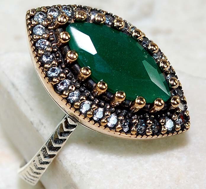 Theme: Fashion & Costumes Certification: Not Applicable Features: Nickel-Free Setting Style: Prong Material: Gemstone Secondary Stone: Topaz Colored Diamond Intensity: Not Applicable Cut Grade: Excellent Gemstone Clarity Grade: Eye Clean Type: Ring Occasion: Anniversary/Engagement/Birthday/Confirmation/Communion Country of Origin: Thailand Color: White Base Metal: Sterling Silver, 925 parts per 1000 Total Carat Weight: 2 Band Width: Not Applicable Diamond Clarity Grade: Not Applicable Metal Purity: 925 Vintage: No Main Stone Color: Green Country/Region of Manufacture: Thailand Main Stone: Emerald Metal: Silver Ring Size: 7.5 Handmade: Yes Brand: Handmade Style: Cocktail Main Stone Treatment: Treated Gemstone Main Stone Shape: Marquise Antique: No Diamond Color Grade: Not Applicable