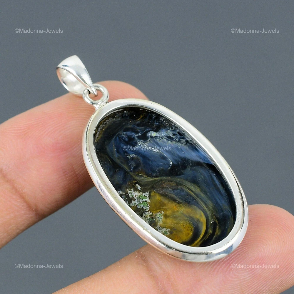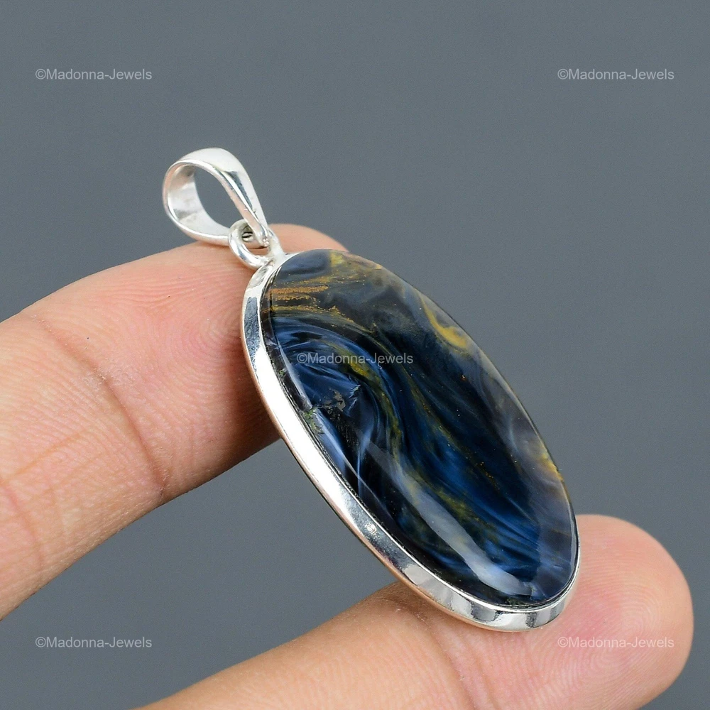 Welcome to Madonna Jewels Mothers day Sale Sterling Silver Oval Pietersite Stone Engagement Bezel Pendant Handmade Pendant, Sterling Silver Pendant, Pietersite Pendant, Handcrafted Pendant SKU : VP-111 Gemstone : Pietersite Stone Shape : Oval Metal Purity : 925 Sterling Silver Length : 64 Millimeters Width : 30 Millimeters Silver Jewelry is a popular choice for many people due to its unique properties and numerous benefits. Here are some of the key properties and benefits of wearing silver jewelry: Properties: Durability: Silver is a durable metal that can withstand regular wear and tear. Malleability: Silver is highly malleable, which means it can be easily shaped and molded into various designs. Conductivity: Silver is an excellent conductor of heat and electricity. Anti-bacterial: Silver has natural anti-bacterial properties, which can help prevent the growth of harmful bacteria. Benefits: Aesthetic appeal: Silver jewelry is known for its beauty and versatility, and can be worn with a variety of outfits and styles. Hypoallergenic: Silver is generally hypoallergenic, which means it is unlikely to cause an allergic reaction in most people. Healing properties: Some people believe that wearing silver jewelry can help with various physical and emotional conditions, such as arthritis, anxiety, and depression. Spiritual significance: Silver has been used in various cultures for its spiritual and symbolic significance, and wearing silver jewelry can help to connect with these traditions. Investment value: Silver is a precious metal that retains its value over time, and investing in silver jewelry can be a smart financial decision. Overall, silver jewelry offers a unique combination of beauty, durability, and benefits, making it a popular choice for people around the world. For Mother's Day Gift For Father's Day Gift For Promise For Valentine' Day For Halloween Party For Christmas Day Gift For New Year Party For Mom For Her If you can't find the information you need or need some advice for your design? Feel free to contact us. We are fast to reply :) All our work is made by hand with Love and Care in our workshop Thank you so much for visiting and hope you enjoy shopping with us Madonna Jewels is dedicated to providing customers with high-quality sterling silver jewelry. As a manufacturer of handmade jewelry, we offer an extensive range of silver gemstone jewelry that demonstrates our exceptional craftsmanship. We are skilled in adorning gemstones to complement any style, and we give you the freedom to design your own jewelry collection with dazzling, natural, and genuine gemstones. Our talented craftsmen carefully handcraft each jewelry piece, ensuring that it is unique and made with authentic gemstones. The jewelry item you see on our website is precisely the same one you will receive.