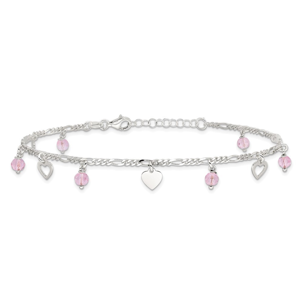 925 Sterling Silver Heart Dangle Anklet 10 Inch 2.43 Grams for Women