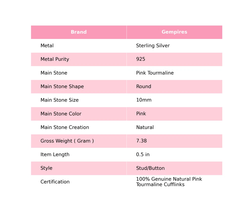 Welcome To Our Shop Gempires ------------------------------------------- Ultimate symbol of elegance and beauty this Pink Tourmaline 925 Sterling Silver Cufflinks will add a majestic charm in your overall look. Its resplendent design will definitely grab the attention of everyone around you. Sterling Silver Pink Tourmaline Gemstone Anniversary Birthday Cufflinks Jewelry Check My Other Cufflinks Listings : Click Here SKU: CL-4-11 Gemstone: Pink Tourmaline Stone Shape: Round Metal : 925 Sterling Silver Length: 0.5 Inches ___________________________________________________________________ Shipping Handling - Free Standard Shipping all over the world Handling Time - 2 to 5 BUSINESS Days Delivery Time - 7 to 20 Days ( Various on destination ) _________________________________________________________________ Returns - 1.We provide a 100% Money Back Guarantee, excluding shipping costs, within 30 days from the date of item receipt. 2.The item must not be altered or damaged in any way shape or form. 3.Upon receipt of the aforementioned items, your payment will be promptly refunded. 4.Please be so kind as to contact us via email in order to acquire comprehensive return instructions before proceeding with the return of the merchandise. 5.Kindly be advised to allocate a maximum period of 1 business day for the processing of all returns, in order for the appropriate credit to be applied. 6.Sizing does not affect the return policy. _________________________________________________________________ FAQ's - Q.1 ARE THE ITEMS YOU ARE SELLING BRAND NEW? We exclusively offer brand-new products, refraining from the sale of pre-owned jewelry. Our entire jewelry collection is composed of 100% natural, conflict-free pieces. We do not engage in the trade of imitation or lab-grown gemstones and diamonds. Q.2 WHAT ARE YOUR BUSINESS HOURS? we operate 24x7 as we have a dedicated team who works in different shifts to deliver the services to our valuable customers. ________________________________________________________________ Gempires is committed to delivering customers an unparalleled experience through the provision of exquisite handmade jewelry, meticulously crafted to uphold the most exacting standards of quality. Our operations encompass dual roles as both discerning connoisseurs and skilled artisans within the realm of jewelry making. We proudly hold an extensive proficiency in the fine art of enhancing gemstones, allowing us to harmonize them seamlessly with diverse aesthetic inclinations. We are delighted to extend to you the privilege of curating your very own jewelry collection. This collection will be graced by the presence of genuine and splendid natural gemstones, each possessing an innate authenticity and beauty that is truly unparalleled. **** STAY BLESSED ALWAYS*****