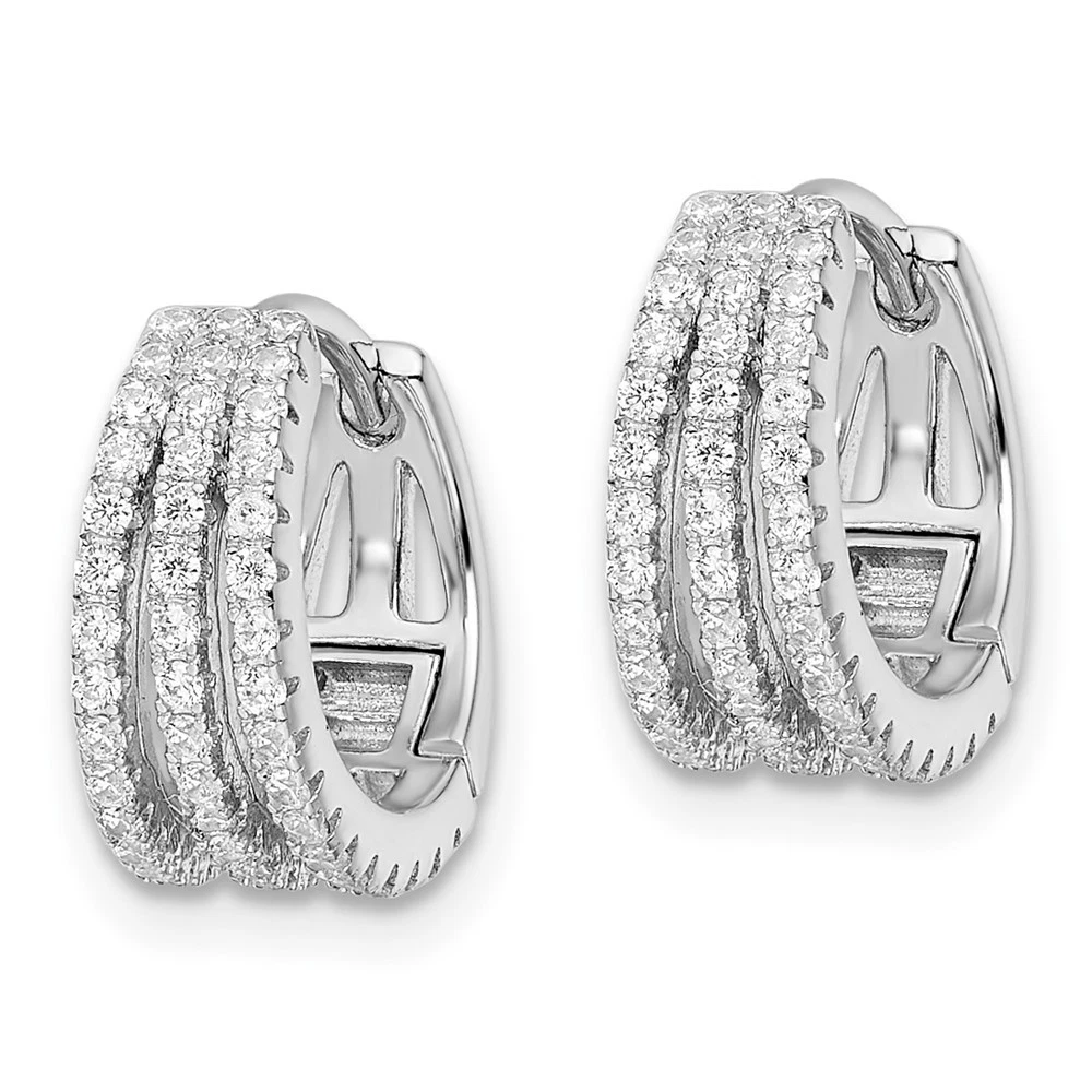 Material: Primary - Purity:925|Finish:Polished|Stone Type_1:Cubic Zirconia (CZ)|Stone Color_1:White|Stone Quantity_1:102|Length of Item:12.3 mm|Plating:Rhodium|Feature:Hinged|Material: Primary:Sterling Silver|Completeness:Complete (all stones included)|Stone Shape_1:Round|Stone Treatment_1:Synthetic|Thickness:6 mm|Width of Item:12.81 mm|Product Type:Jewelry|Jewelry Type:Earrings|Sold By Unit:Pair|Gender:Women's|Material: Primary - Color:White|Earring Closure:Post, Notch & Lock|Earring Type:Hoop|Plating Color:Silver Tone|Stone Creation Method_1:Synthetic|Earring Style:Hinged / Huggie All weights and measurements are approximate and may vary slightly from the listed information. Welcome to diamond_6720 Payments We accept all Ebay approved payment. Please sent the payment to us within 8 days after the auction has ended, or you will have unpaid case auto open by eBay. Shipping Policy We will ship all items within 1 business days of purchase during the work week (M-F) excluding holidays. If you order on Friday, your order will be shipped the following business day. Tracking will be provided when it becomes available. We will only ship to a PayPal Verified Address. Please make sure your address is current and correct. If the information does not match, your order may be canceled. Buyers are responsible for all customs, duties and taxes for your respective countries. Delivery times for International Shipping will vary. California Buyers Pay 9.0% Tax on all orders. case auto open by eBay. Return Policy & Exchange Returns or Exchange are accepted. Buyer must contact us within 30 days after the item is received. Item must be returned in unworn and resalable condition. We will only issue a refund for the purchase price, excluding any shipping fees. If we are at fault, we will provide a full refund. Buyer is responsible for all return shipping costs. BUYERS FEEDBACK If you have any concerns regarding your purchase, please contact us via eBay Message, we assure you that a satisfactory resolution will be reached. Your feedback is very important to us Do remember to give us 5 star rating(*****) if you are satisfied with our product & service .